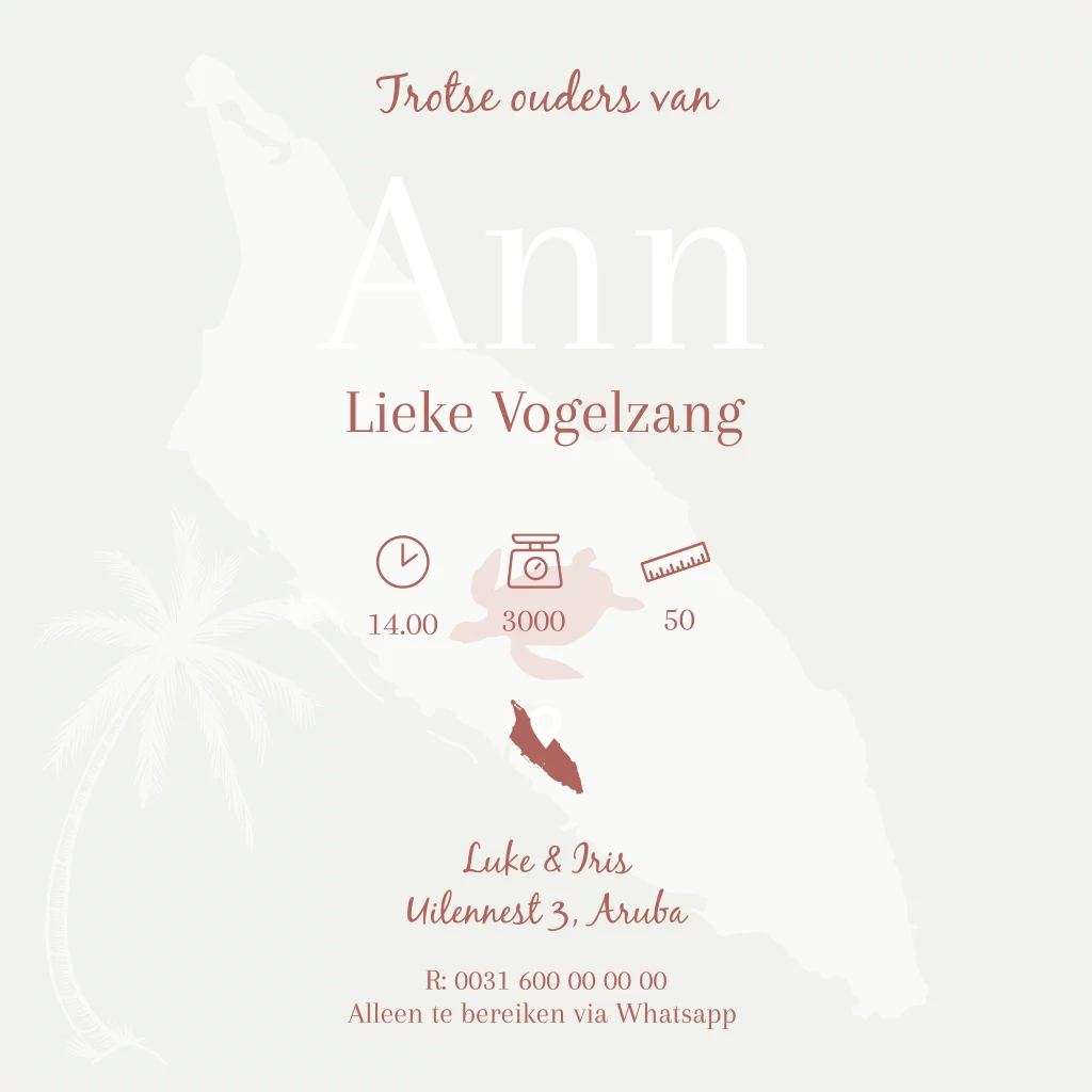 Geboortekaartje Aruba Palmboom Eiland Bon Bini