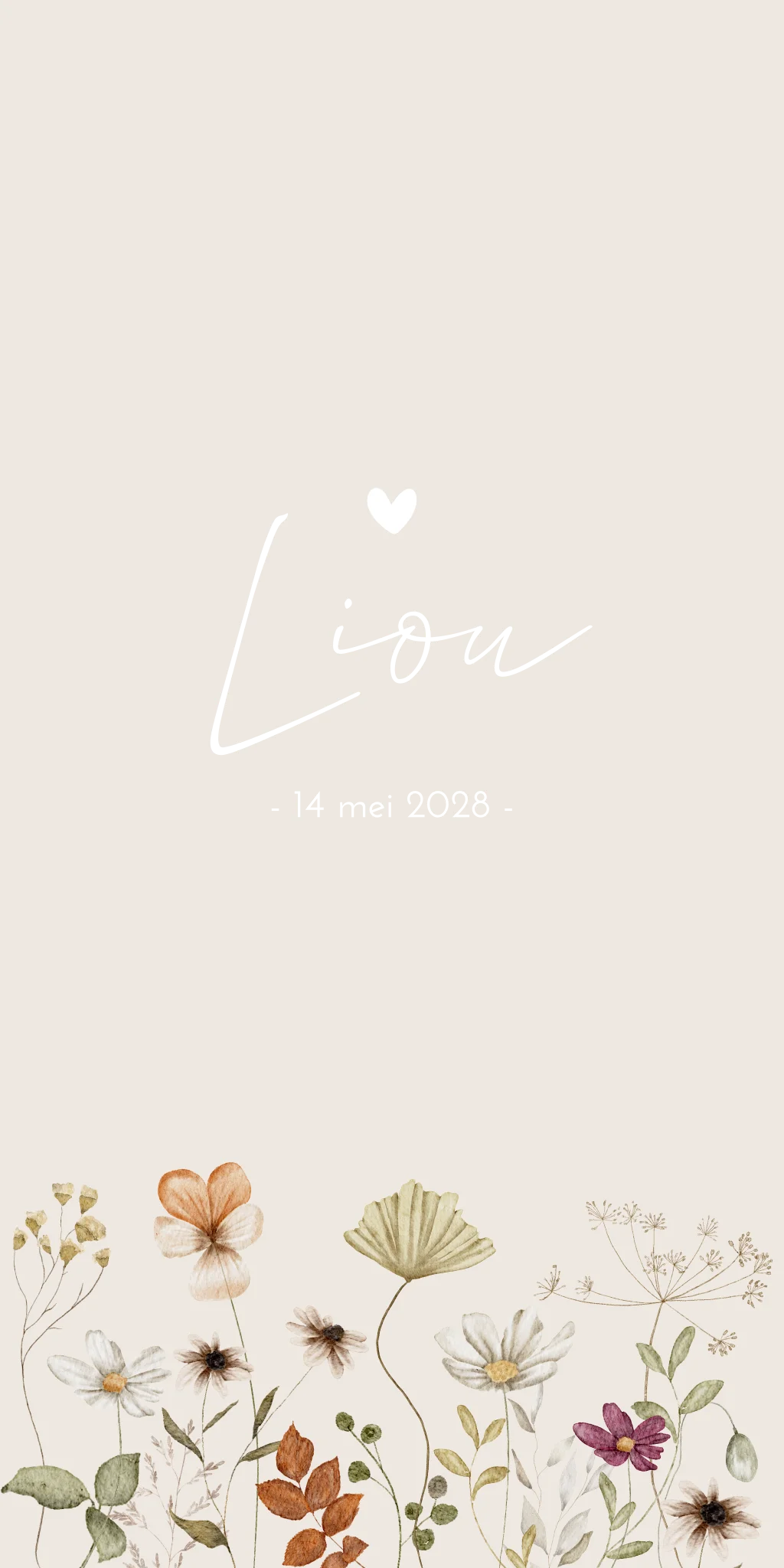 Een lief en romantisch geboortekaartje voor een dochtertje, met allerlei waterverf bloemetjes in diverse kleuren. Op babykaartje Liou staat de naam in koperfolie voor een chique uitstraling. Wil je graag iets aanpassen? Neem dan een kijkje in onze editor voor de vele opties!