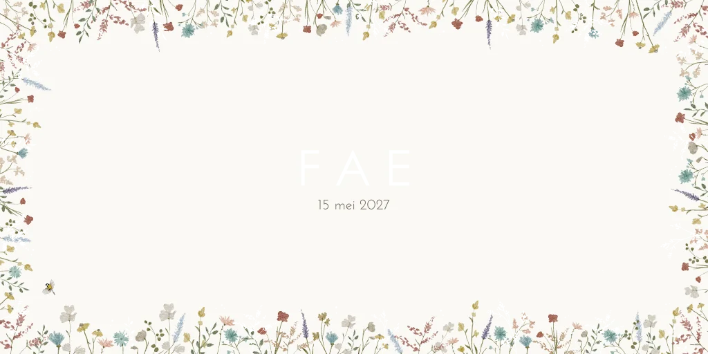 Een romantisch bloemenkaartje vol met kleurrijke bloemen in alle kleuren! Op kaartje Fae zijn een paar takjes en stipjes in goudfolie afgedrukt voor een speels effect. Zo is het kaartje chique, speels en kleurrijk. Wil je graag iets aanpassen? Neem dan een kijkje in onze editor voor de opties.