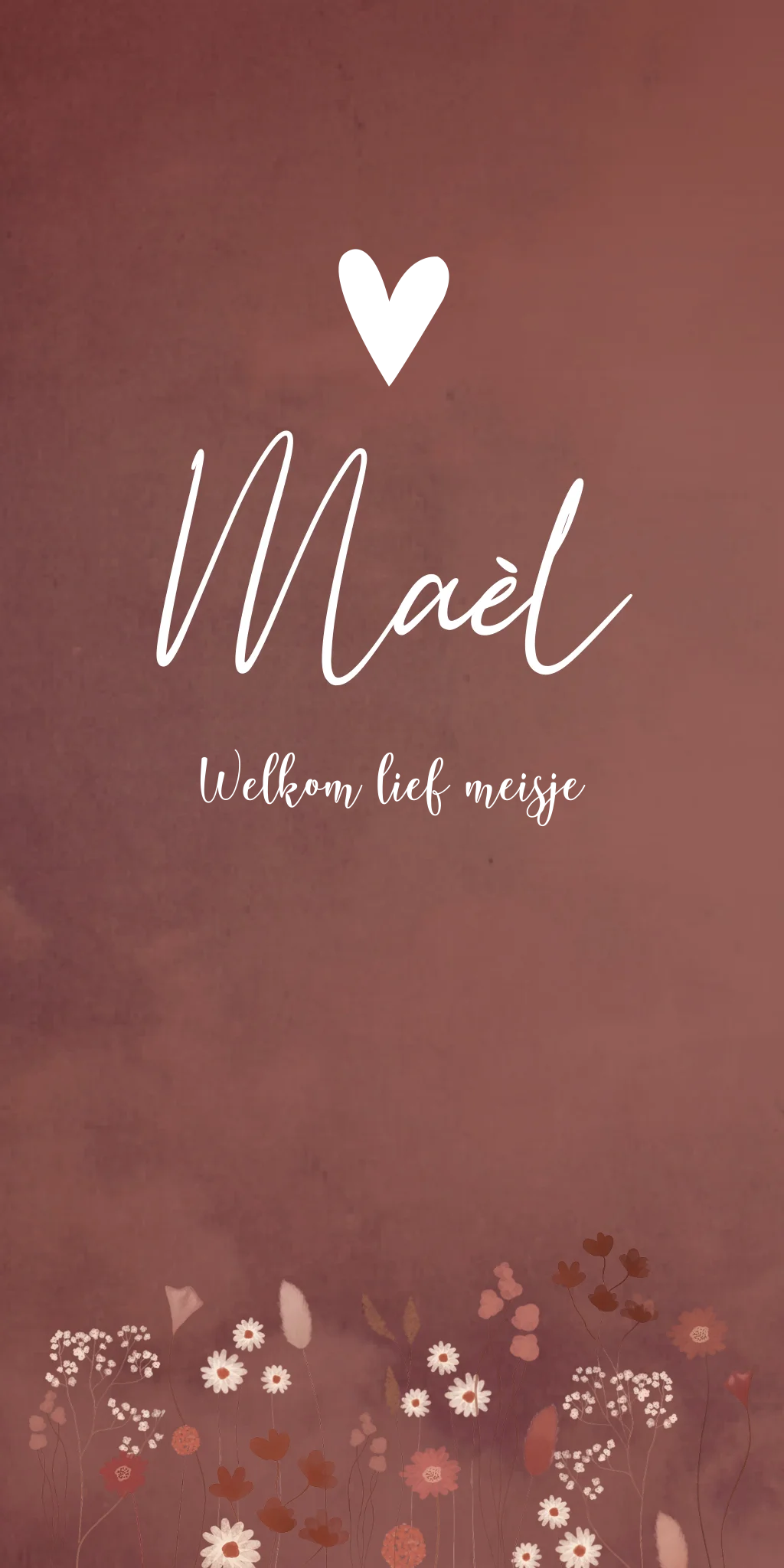 Een warm geboortekaartje in een bordeaux rode/ roze kleur. De sierlijke bloemen maken het kaartje helemaal af! Geboortekaartje Maèl is erg mooi met goudfolie. Bekijk de verschillende opties in de editor.
