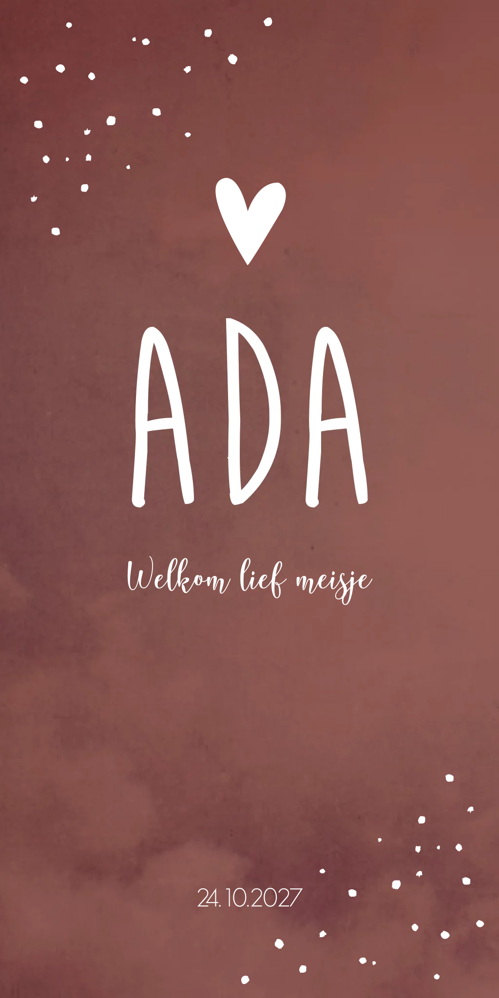 Een warm geboortekaartje in een bordeaux rode/ roze kleur. De gouden stippen maken de kaart speels. Geboortekaartje Ada is erg mooi met goudfolie. Bekijk de verschillende opties in de editor.