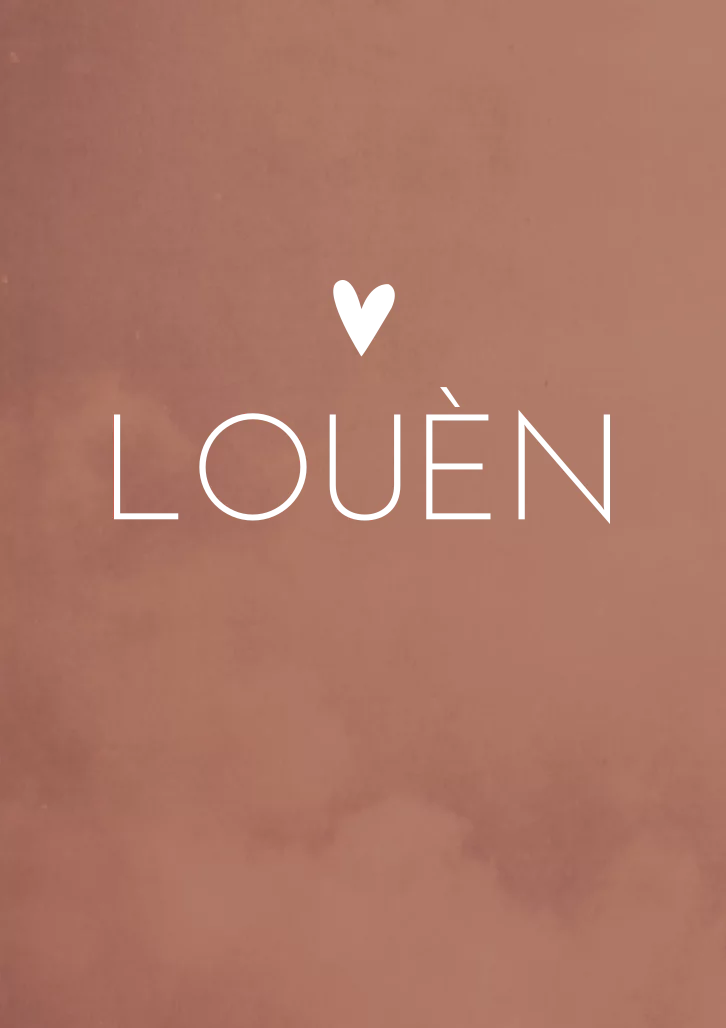 Roze/paars gewolkte kaart met gouden tekst en hartjes. Toch liever een andere kleur? Pas dan de kleuren aan in de editor om hem helemaal naar jouw smaak te maken.