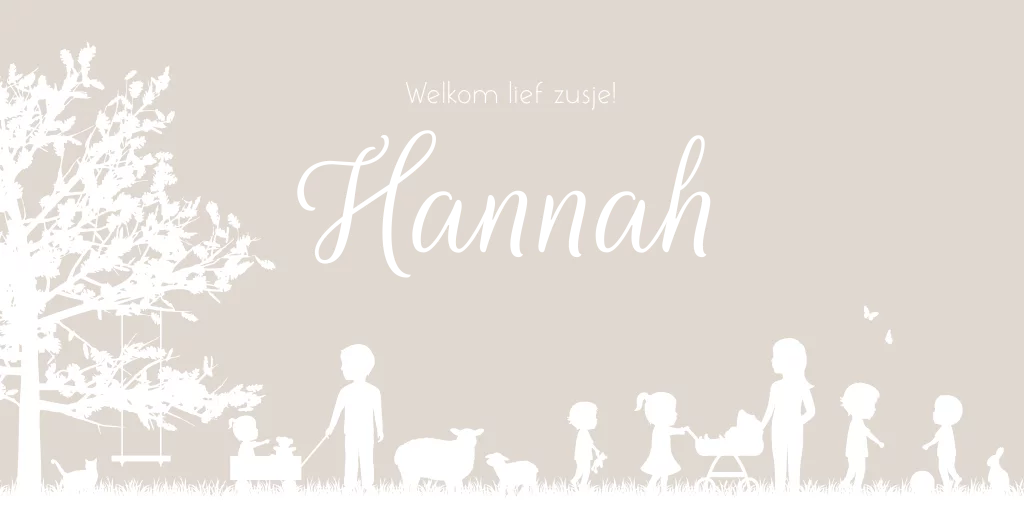Prachtige illustratiekaart Hannah Liva voor een groot gezin. Je kunt zelf de kindjes kiezen in onze editor, zo ook de diertjes. 2 jongens zijn aan het voetballen, een kindje duwt de kinderwagen. Een broer trekt de kar met zijn zusje en haar knuffel er in. Zo maak je de kaart helemaal eigen. Als je kindjes bepaalde hobby's hebben kun je dit ook op de kaart verwerken. Zoek je iets speciaals en zit het er niet tussen? Stuur ons een mailtje, dan gaan wij het voor je maken en in de editor zetten!