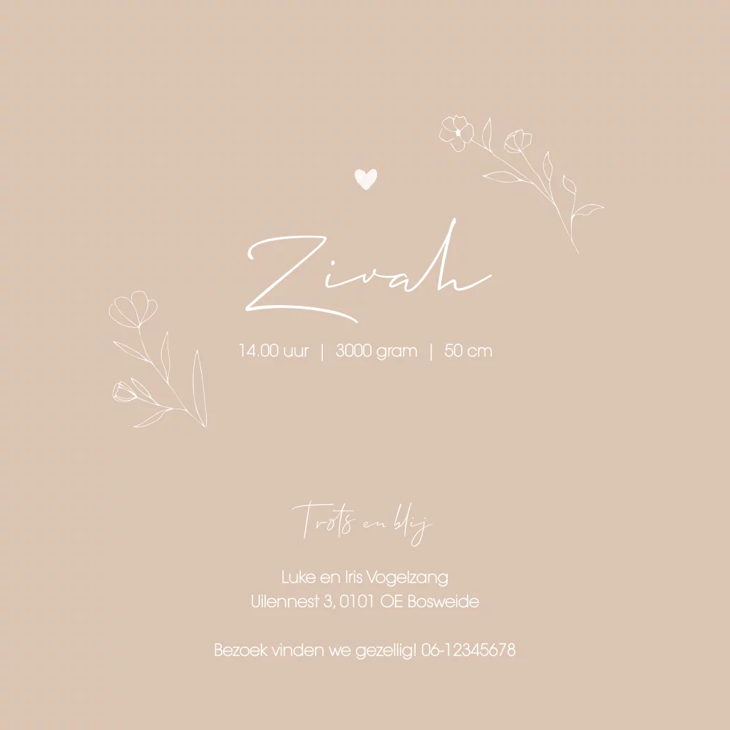 Geboortekaartje lijntekening Bloemen Lief Meisje