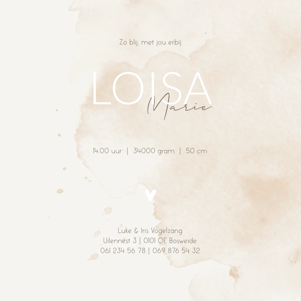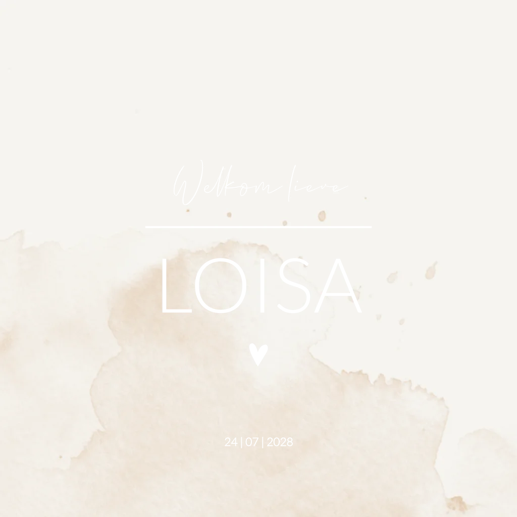 Beige/ crème gewolkt geboortekaartje. Geboortekaartje Loisa is een lief stijlvol en warm geboortekaartje met wok effect. Maak het kaartje extra bijzonder door het te laten bedrukken met roséfolie.
