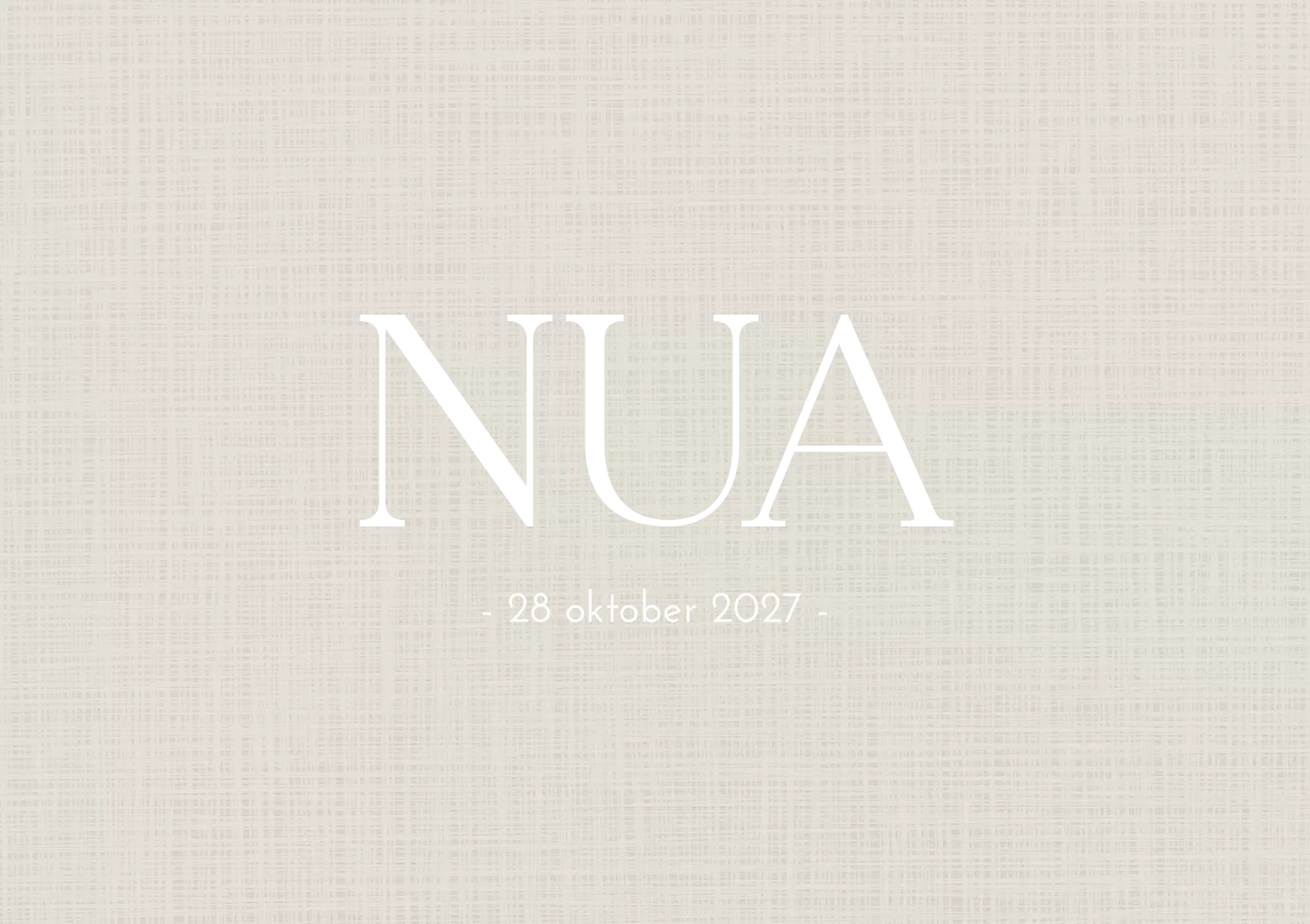 Prachtig stijlvol geboortekaartje met linnen achtergrond als afbeelding. Kaart Nua is erg mooi met de naam in goudfolie. Wil je de kaart toch liever net iets anders zodat het matches bij de babykamer van je kindje? Je kunt de kaart volledig zelf aanpassen in de editor!
