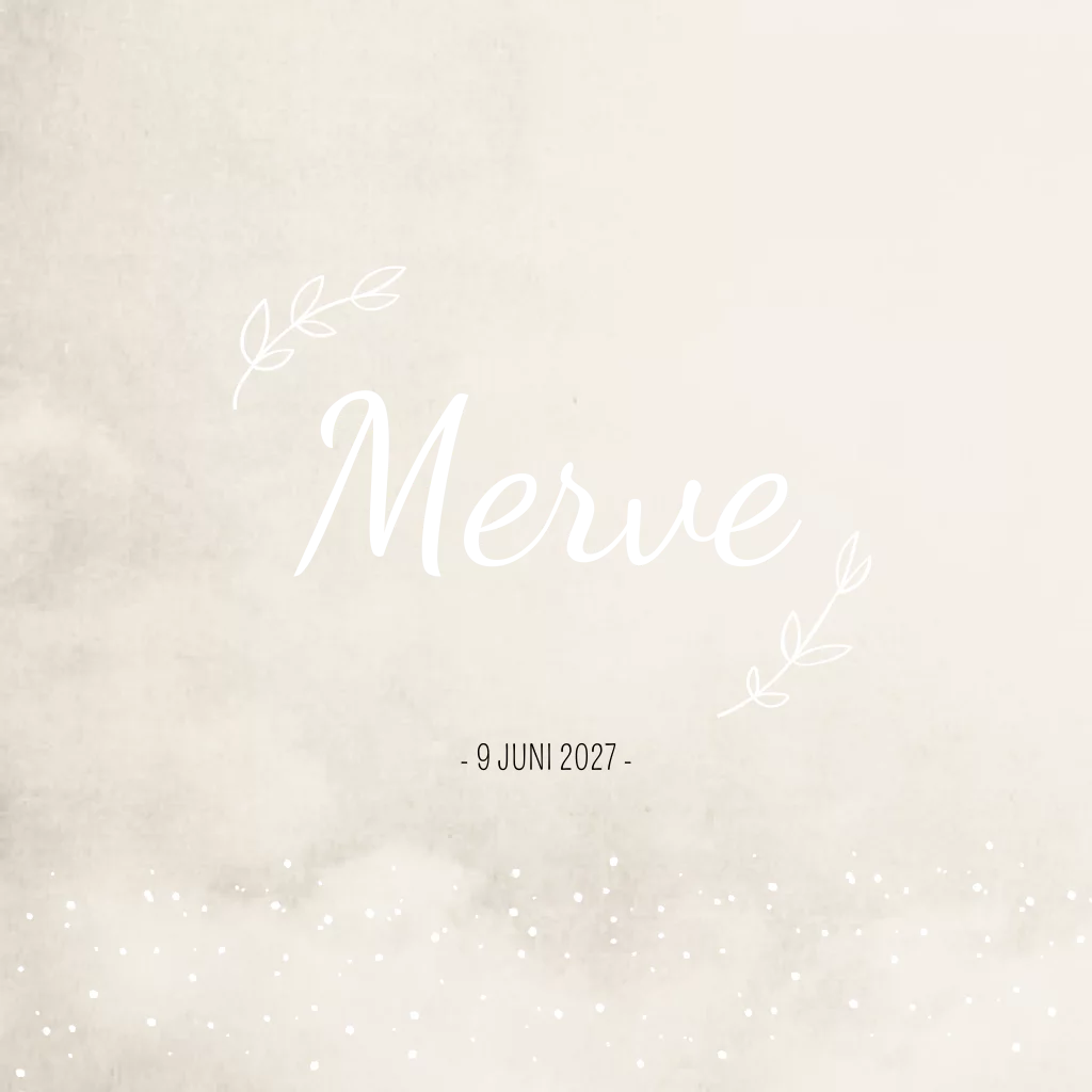 Beige/crème gewolkt geboorte kaartje met witte stipjes. Geboortekaartje Merve is nog mooier met koperfolie. Voeg je eigen teksten toe aan het kaartje in de editor.