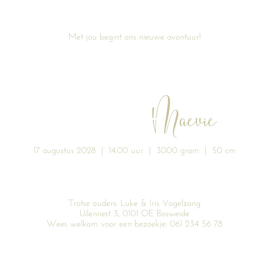 Beige/ crème velvet look geboortekaartje. Geboortekaartje Lou is een stijlvol en warm geboortekaartje met suède effect. Maak het kaartje extra bijzonder door het te laten bedrukken met foliedruk.