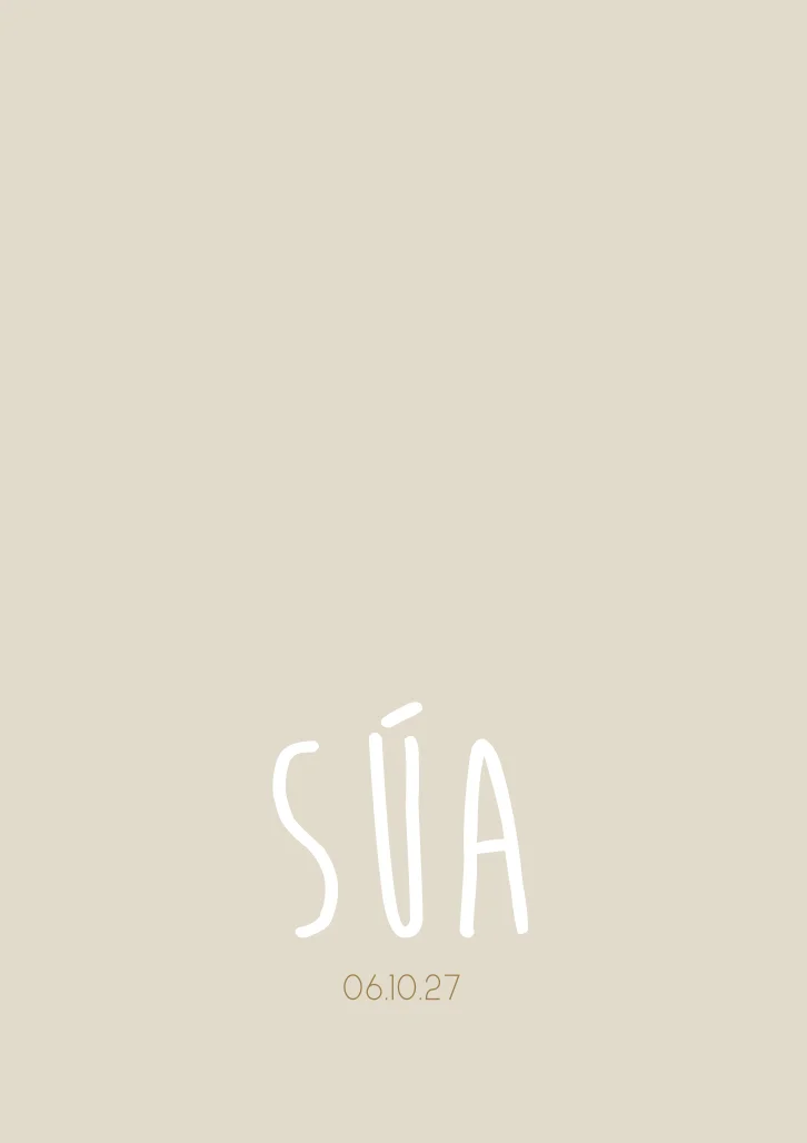 Een neutraal geboortekaartje met ruimte voor een foto of voor een mooie illustratie. Kaartje Súa heeft een mooie beige tint, waardoor die rustig en natuurlijk oogt. Maak het kaartje helemaal naar jouw smaak in de editor.