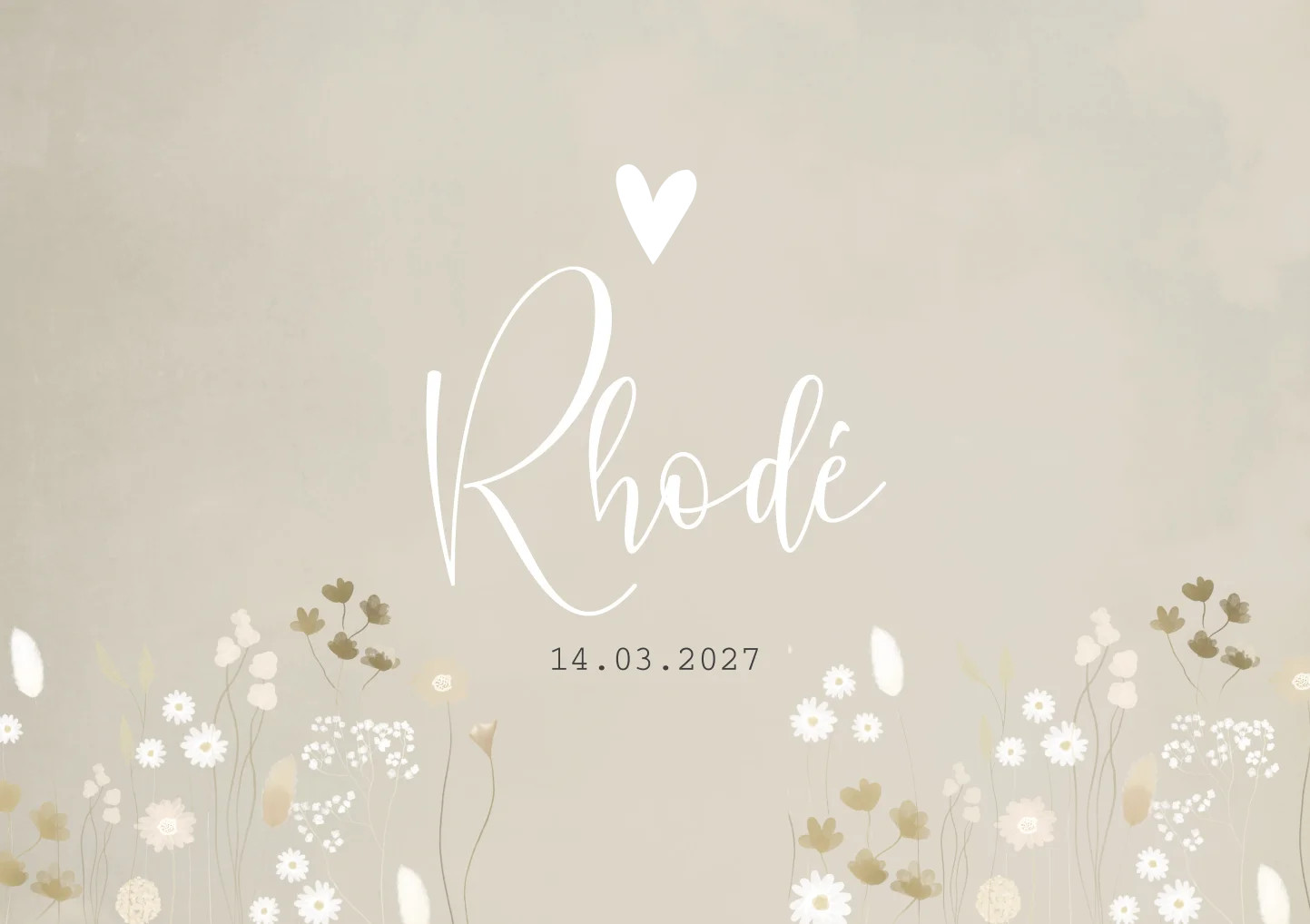 Prachtig geboortekaartje Rhodé Livia met allerlei soorten bloemen in beige/ crème tinten. Een klein subtiel detail in goud maakt het extra chique. Dit kaartje is echt een schitterend luxe kaartje voor een meisje. Wil je de kleuren aanpassen? Dat kan, je maakt de kaart volledig naar jouw stijl in onze editor!