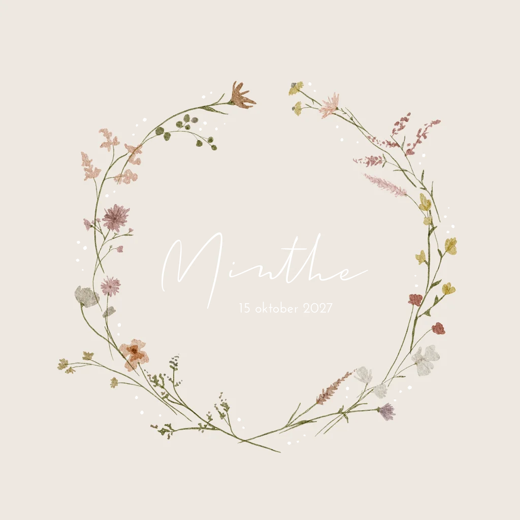 Geboortekaartje Meisje Bloemen Krans Watercolor