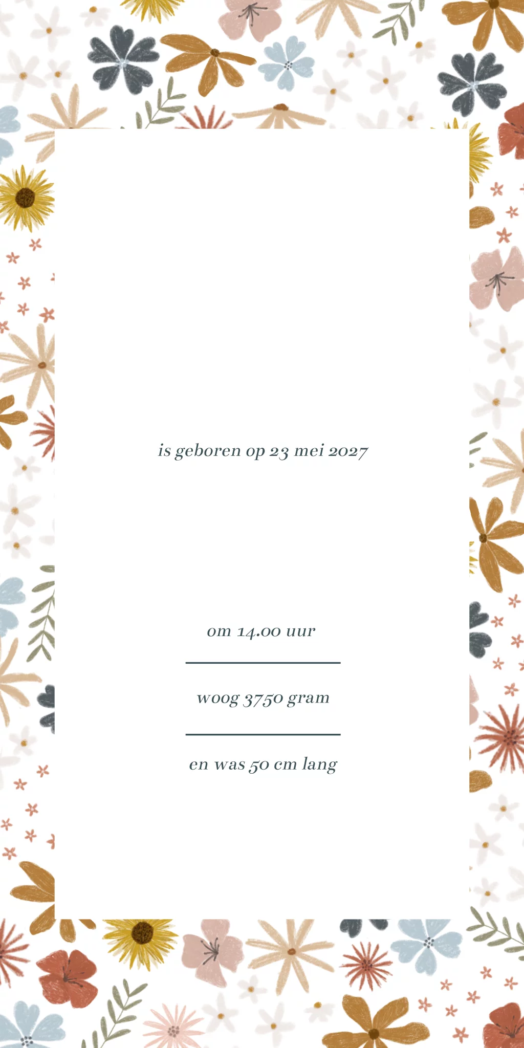 Een kleurrijk vrolijk geboortekaartje vol met getekende bloemen. Kaartje Mila wordt door het lettertype en de gouden rand heel stijlvol. Op de achterzijde van de kaart is ruimte voor 2 mooie fotootjes. Wil je graag iets aanpassen? Neem dan een kijkje in onze editor voor de vele opties!