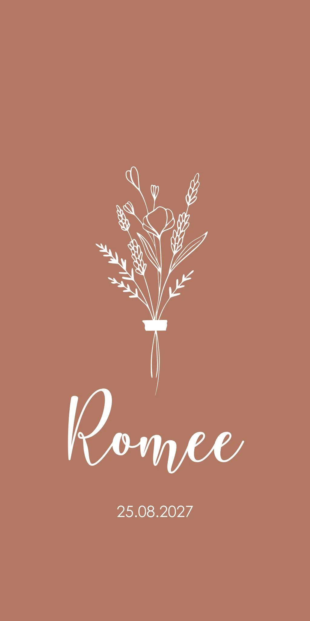Hip en modern geboortekaartje in bruin roze kleur met een wit bloemen boeketje van droogbloemen. De naam Romee is in sierlijke letters op de kaart gezet en de verdere tekst in een strak lettertype. Wil je het graag aanpassen zodat het naar jouw smaak is? Je doet het in onze editor!