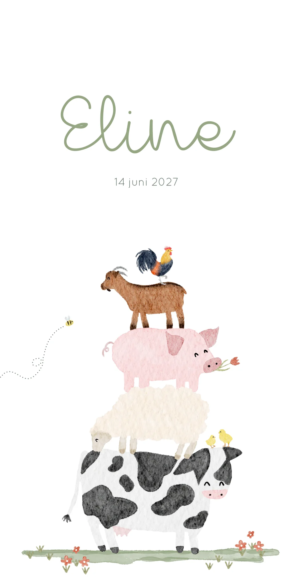 Geboortekaartje Meisje Boerderij Dieren Stapel