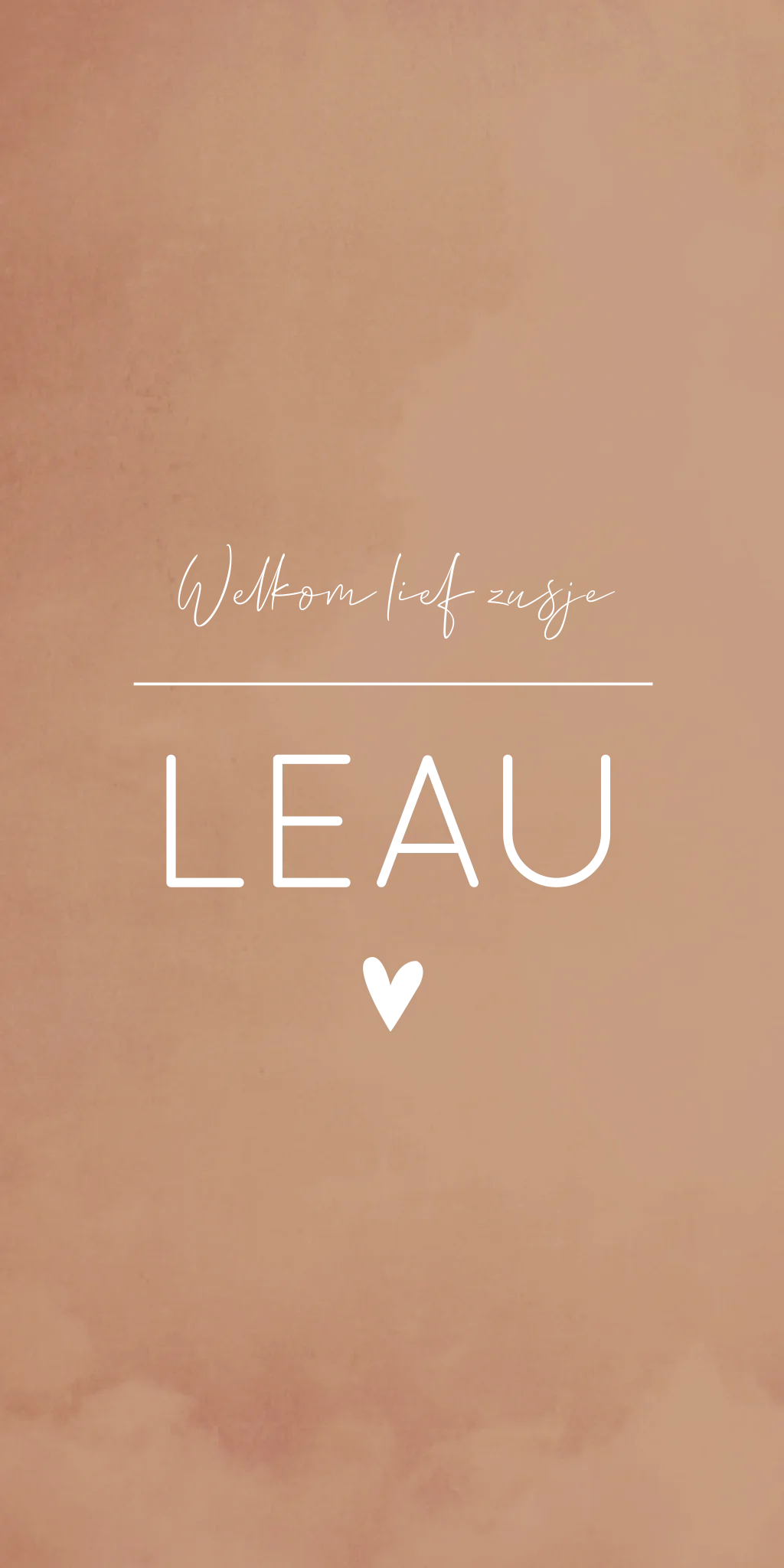 Bruin geboortekaartje met een illustratie van een hartje. Door de koperfolie valt de tekst van kaartje Leau extra op. Pas het kaartje naar eigens wens aan in de editor.