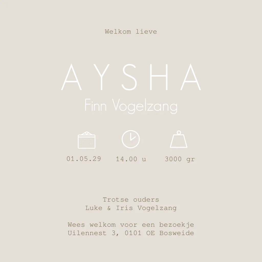 Je kunt de rosefolie aanpassen naar koperfolie, goudfolie of zilverfolie. Op geboortekaartje Aysha kun je de illustratie aanpassen naar jouw wensen. In de beeldbank vind je veel mooie tekeningen waar je uit kunt kiezen. Wil je dit geboortekaartje liever in een ander kleur? Pas de kleur naar eigen wens aan in de editor.