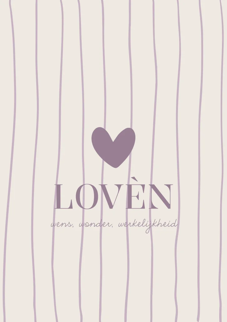 Een prachtig beige/lila/paars gestreept baby kaartje Lorèn met een hartje.
