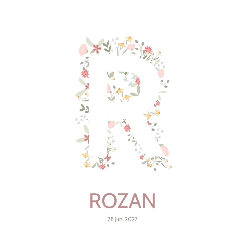 Geboortekaartje Meisje Initiaal Bloemen letter