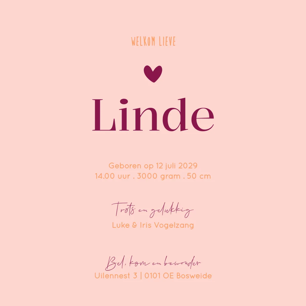 Een stoer en vrolijk geboortekaartje met strepen. Geboortekaartje Linde is naar eigen wens aan te passen in de editor.