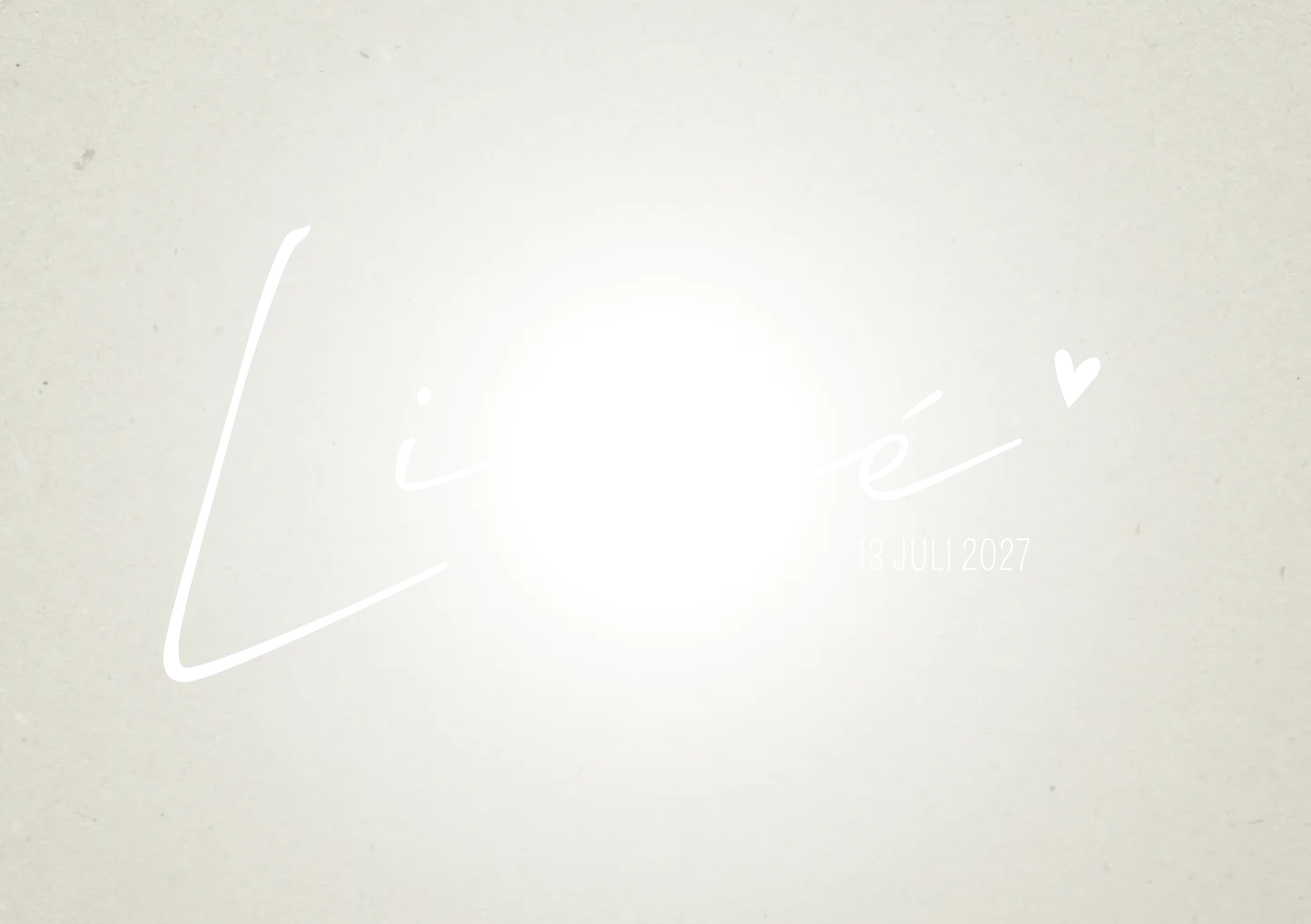 Prachtige eenvoudige creme/ beige kaart Livaé Louèn met lichtinval in het midden. De sierlijke letters kunnen in koperfolie gedrukt worden. Wil je deze kaart zelf aanpassen naar jouw wensen? Je doet het binnen enkele minuten in onze editor! Zo kun je het kaartje ook laten matchen met de babykamer zodat alleen een mooi geheel wordt.