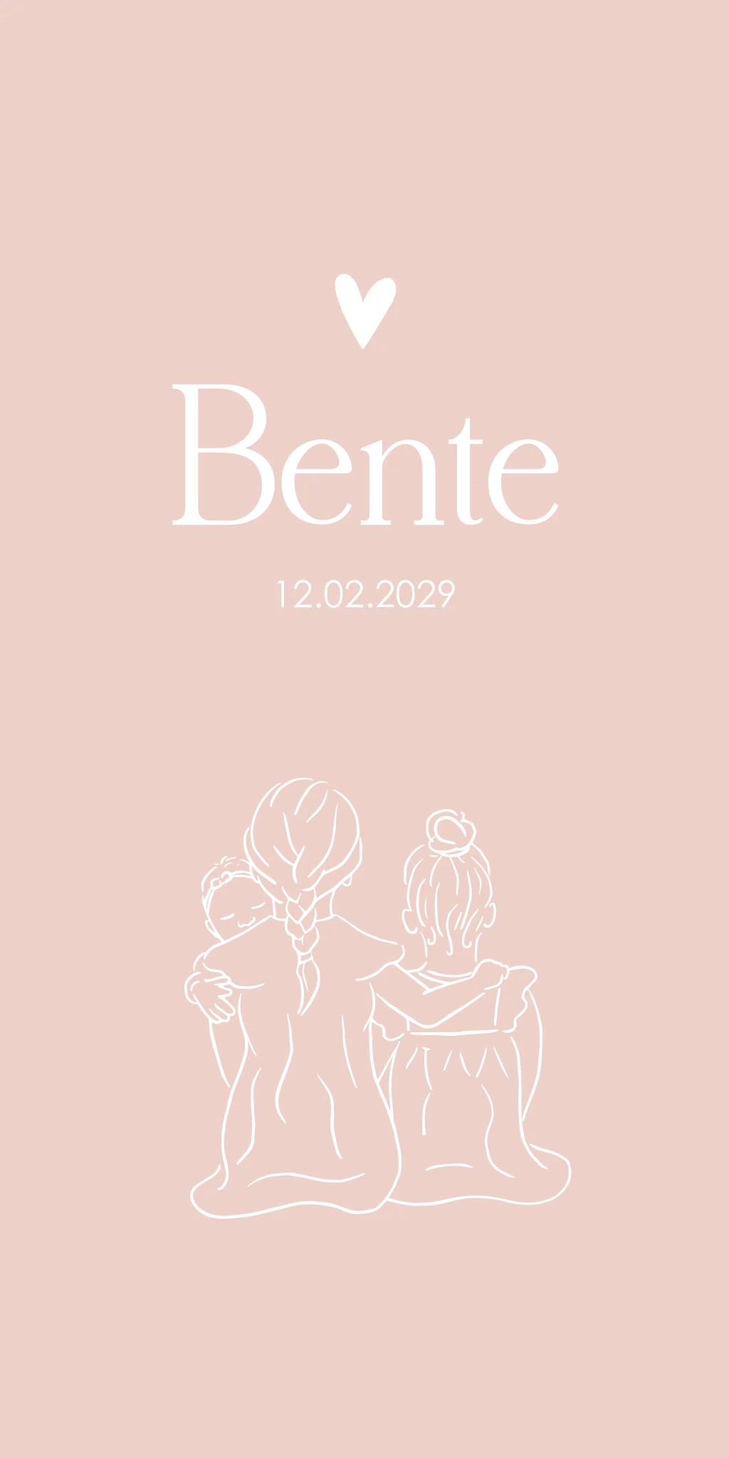 Een zachtroze geboortekaartje dat afgedrukt kan worden met koperfolie. Op kaartje Bente is een lijntekening van 3 zusjes te zien. Ziet jouw gezin er anders uit? In onze beeldbank vind je heel veel verschillende varianten lijntekeningen.