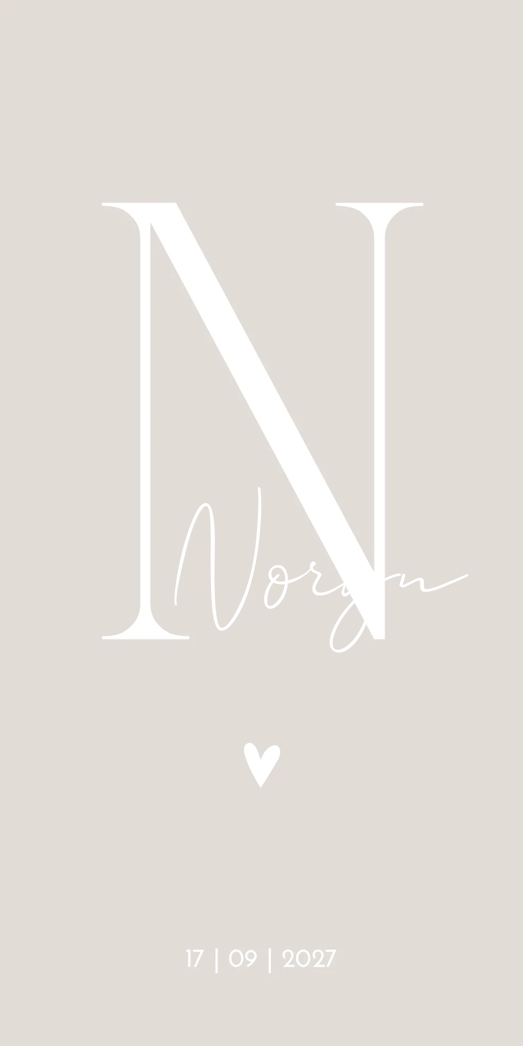 Een beige, neutraal geboortekaartje met een grote letter als initiaal op de kaart. Kaartje Noryn is een modern en strak geboortekaartje. Door de naam in goudfolie te drukken springt deze er extra uit!