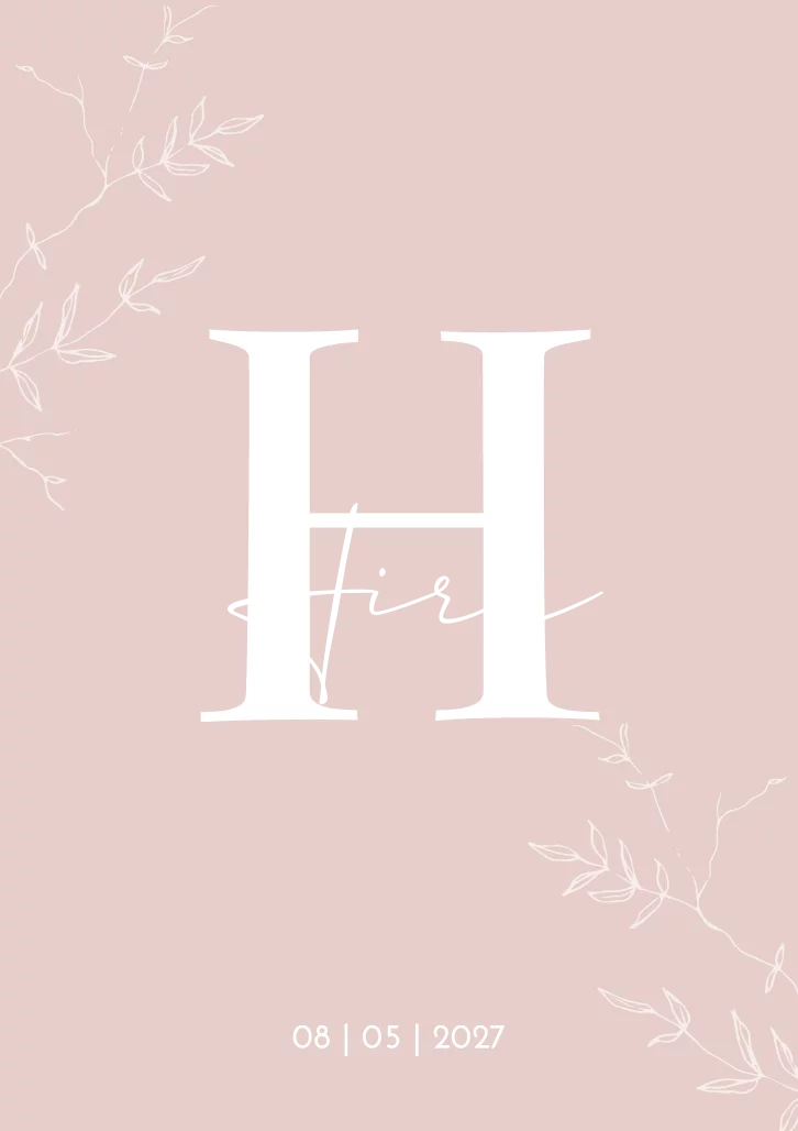 Een zacht roze geboortekaartje met een grote letter als initiaal op de kaart. De speelse takjes maken het kaartje net wat sierlijker. Kaartje Hira is een modern en strakke kaart. Door de naam in goudfolie te drukken springt deze er extra uit! Wil je hem liever aanpassen qua kleur of opmaak? Dit doe je binnen enkele minuten in onze editor!
