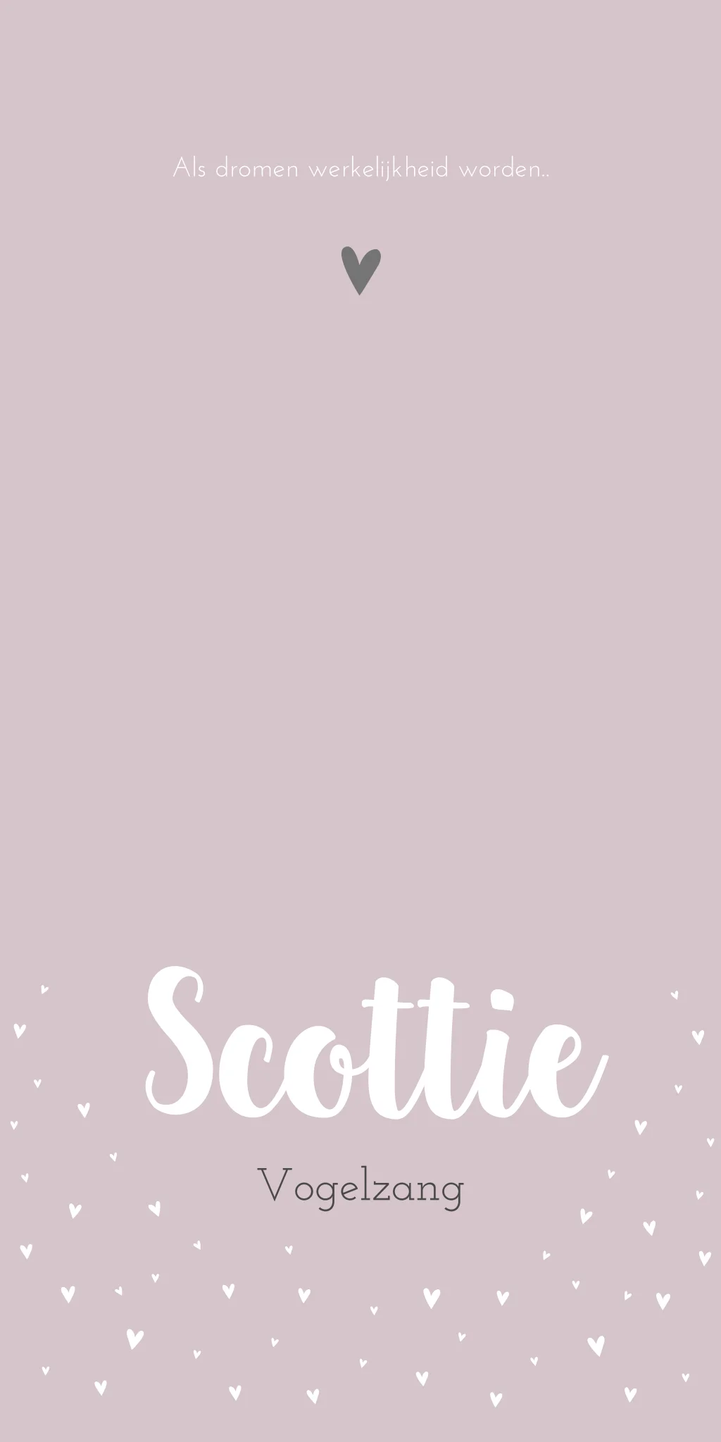Een lief en romantisch geboortekaartje met een licht paarse/roze kleur. Op kaartje Scottie staan veel kleine hartjes om de kaart extra lief en romantisch te maken.