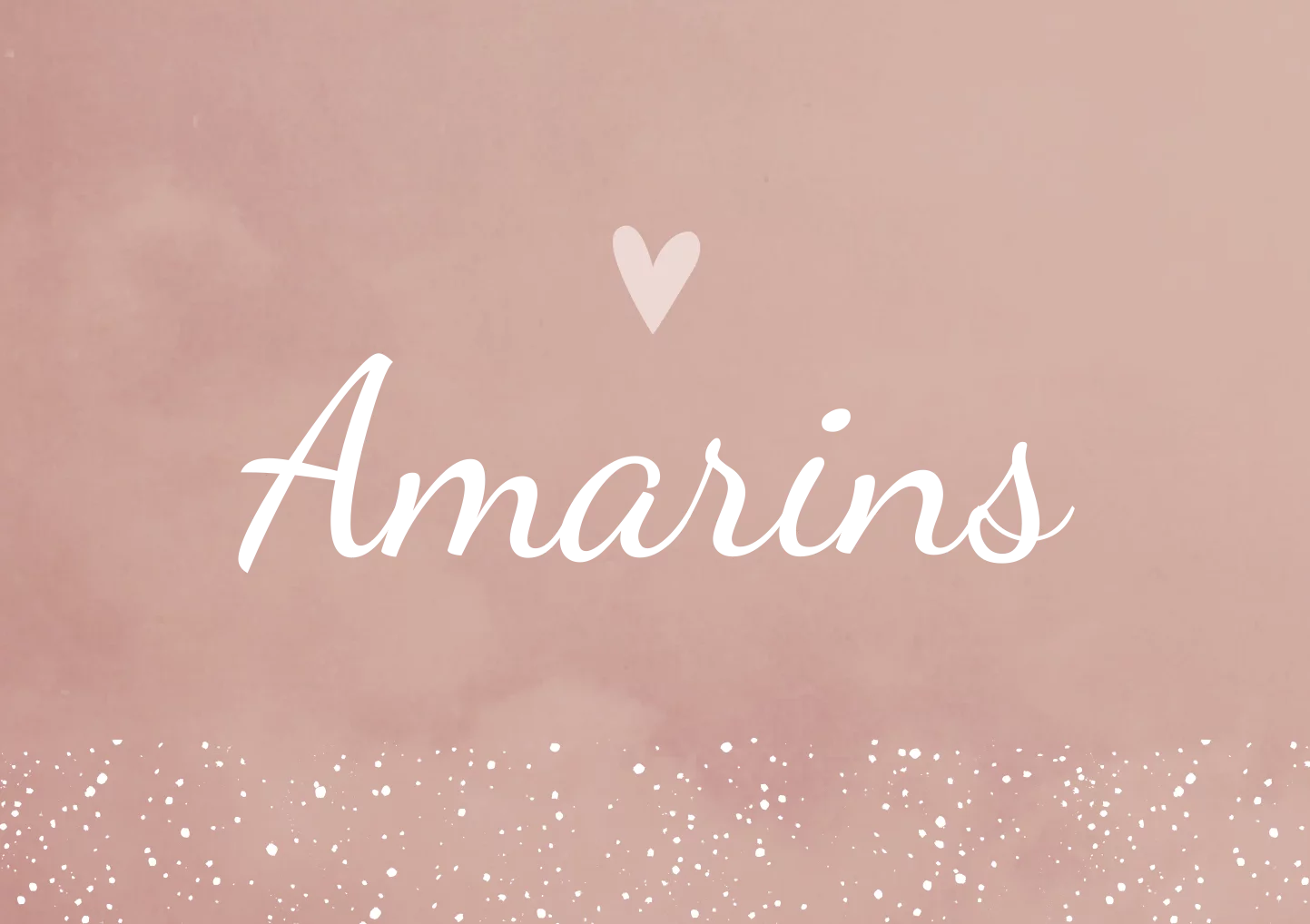 Een romantisch gewolkt roze geboortekaartje met witte stipjes en een lichtroze hartje. De naam op kaartje Amarins is afgewerkt met koperfolie, wat het kaartje extra speciaal maakt. Wil je liever een andere kleur? Neem dan een kijkje in onze editor voor alle opties.