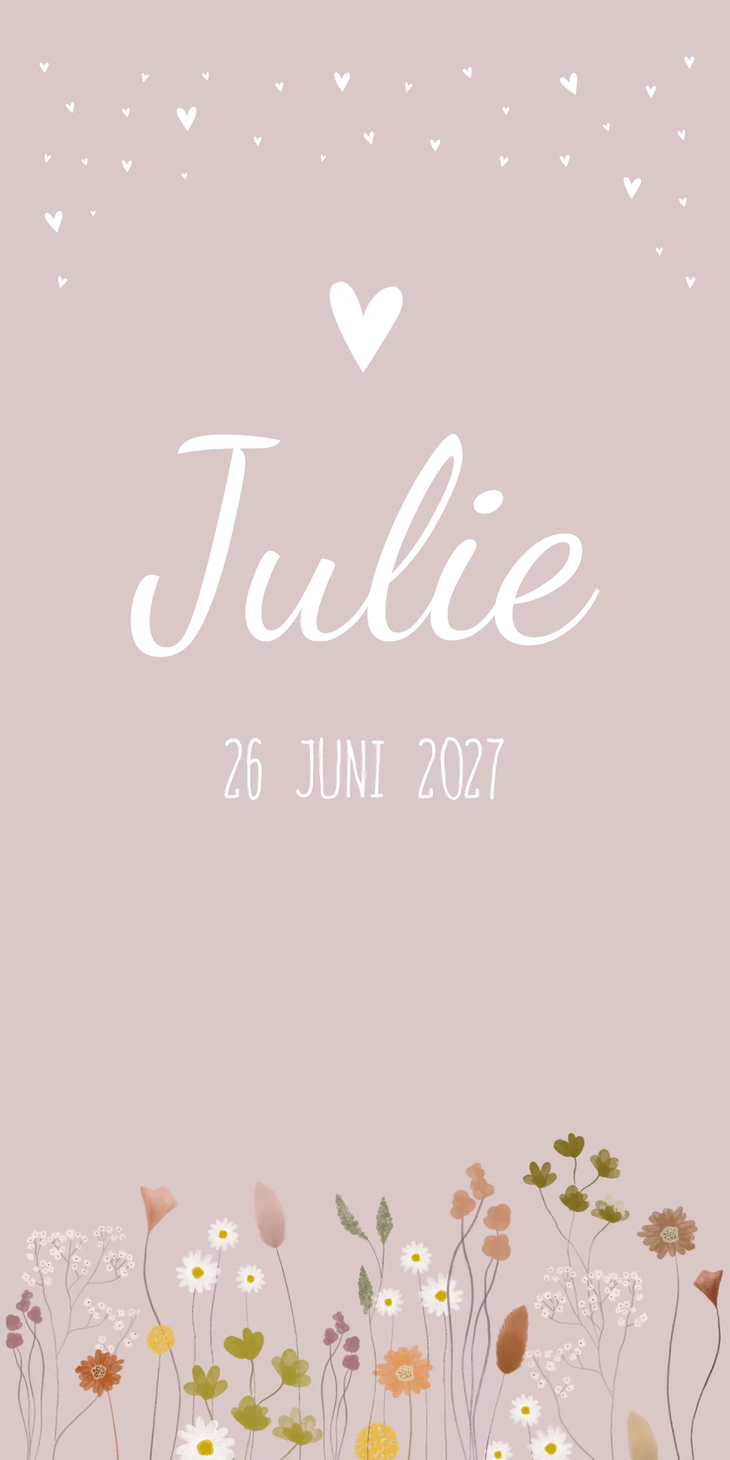 Superlief en hip geboortekaartje Julie Sofie met allerlei soorten bloemen in diverse kleuren. De achtergrondkleur van het ontwerp is oudroze, bedrukt met roséfolie voor de hartjes en de naam. Alles is aanpasbaar naar jouw wensen, je maakt het dan ook helemaal zelf in onze editor!
