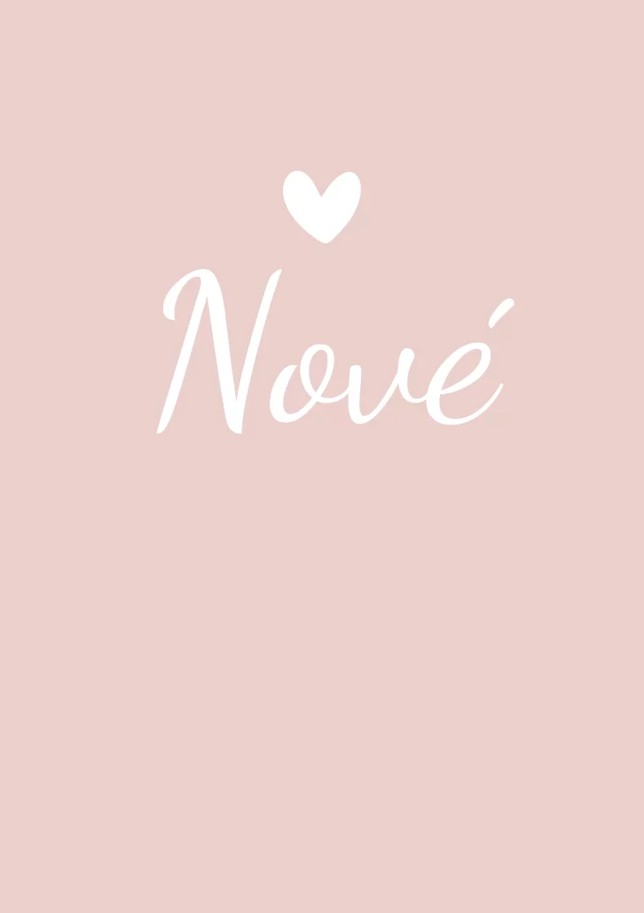 Een simplistisch lichtroze geboortekaartje. Op kaartje Nové staat de naam centraal op de kaart samen met een hartje. Maak het kaartje compleet door bijvoorbeeld een labeltje aan de kaart te bevestigen met een mooie foto.