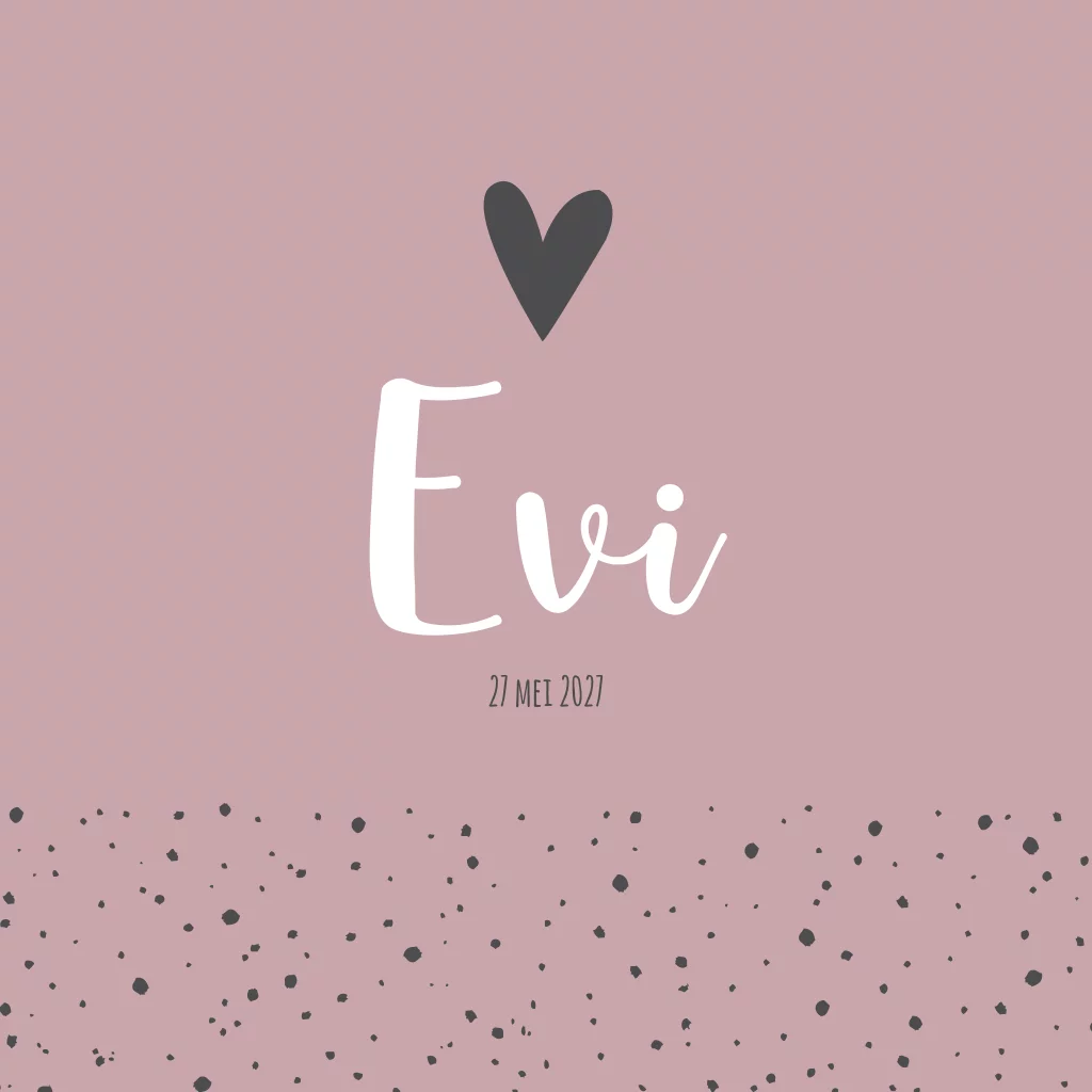 Een combinatie tussen stoer en lief, dat is kaartje Evi. De roze kleur geeft het kaartje een lieve uitstraling maar de stippen maken het geheel weer wat stoerder.