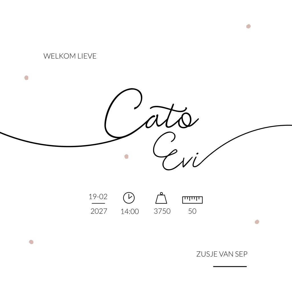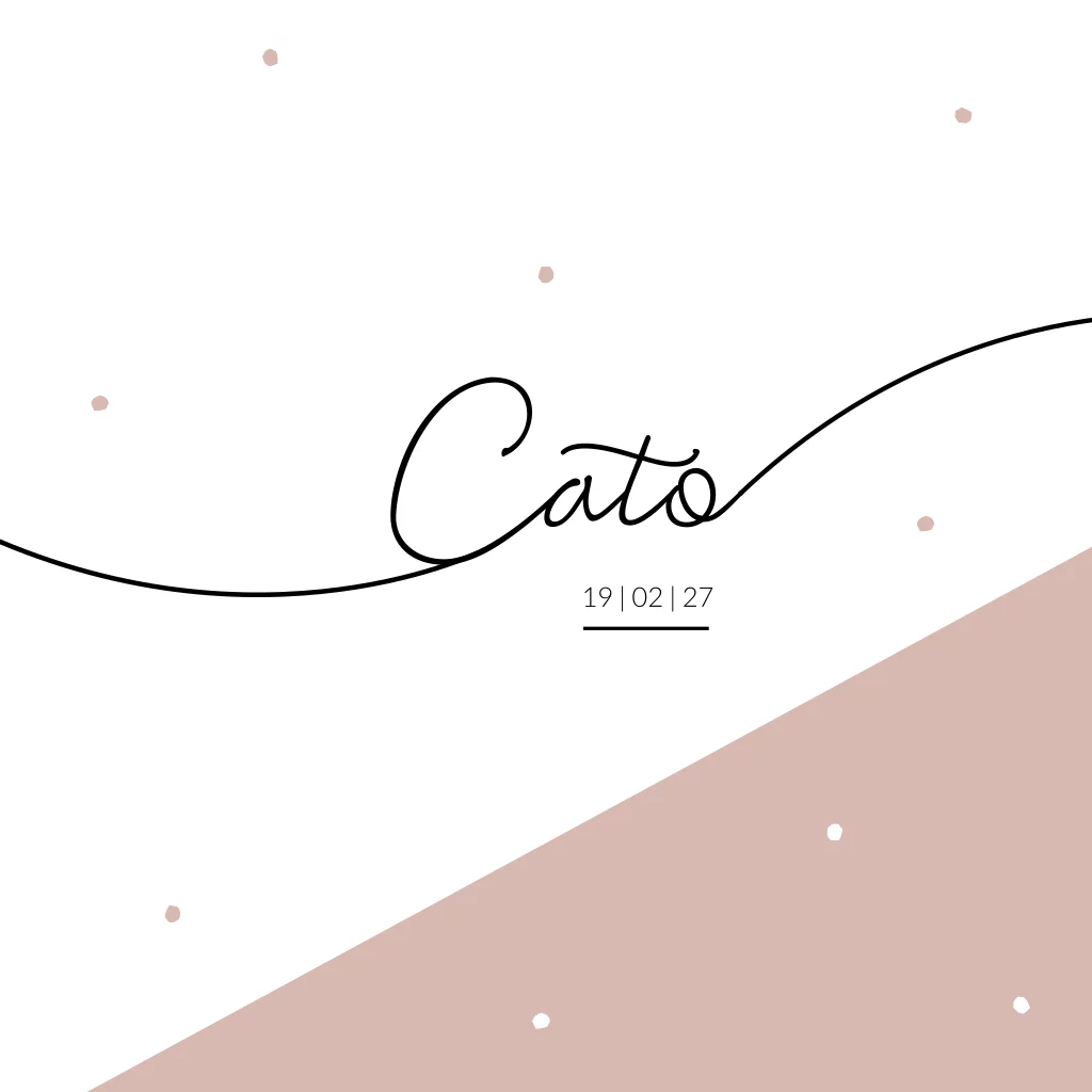 Een strak maar ook romantisch oudroze kaartje. Door de stipjes krijgt kaartje Cato ook een speelse uitstraling. Door gebruik te maken van een handgeschreven lettertype is het perfecte balans tussen lief en modern!