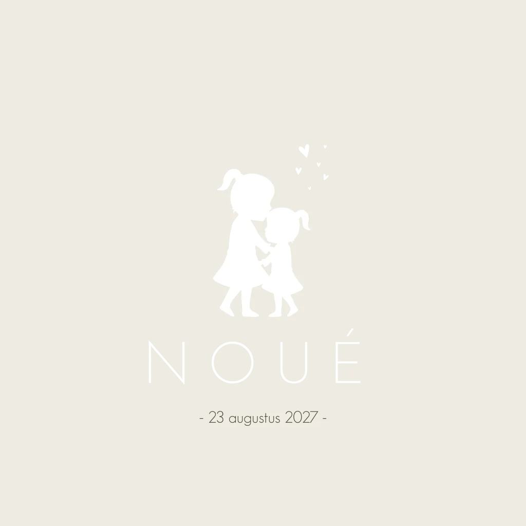 Geboortekaartje meisje silhouet zusjes beige
