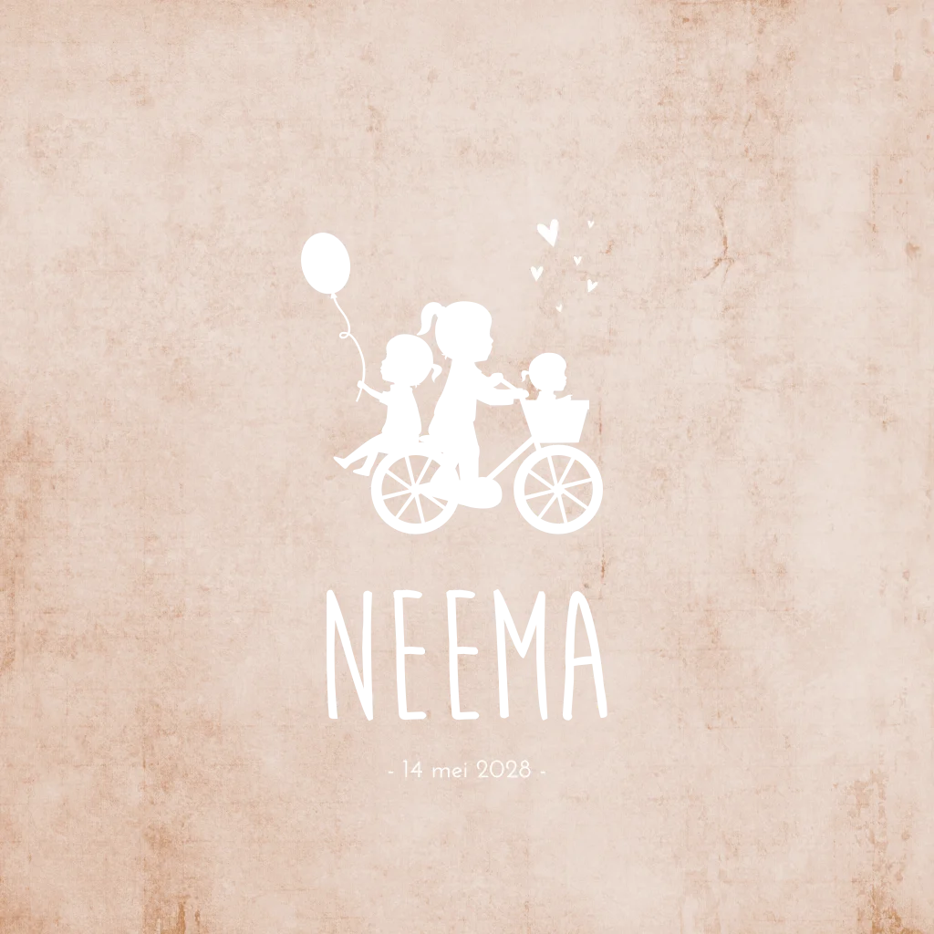 Geboortekaartje Meisje Silhouetten Kindjes Fiets