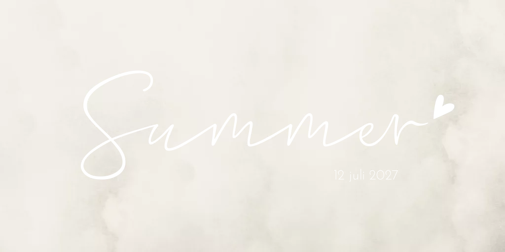 Prachtige babykaart met beige/ crème gewolkte achtergrond en sierlijke letters in koperfolie wat de kaart tegelijkertijd ook heel stijlvol en tijdloos maakt. Kaart Summer Lynn is ook prachtig te combineren met een fotolabel. Dit kun je allemaal zelf samenstellen in onze editor. Heb je de matchende sluitzegel gezien? Zo maak je een compleet setje, prachtig toch?!