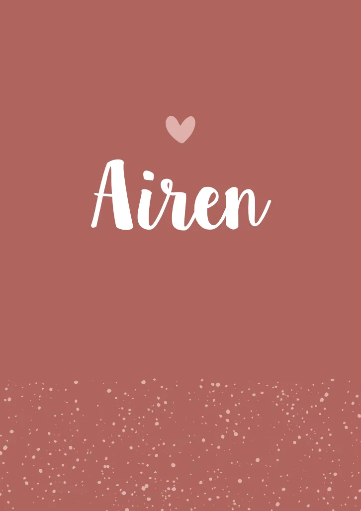 Een vrolijk geboortekaartje met een donkerroze achtergrondkleur. Op kaartje Airen staat de naam centraal en wordt deze aangevuld door een lichtroze hartje. Wil je graag nog iets toevoegen? Neem dan een kijkje in onze editor voor alle opties!