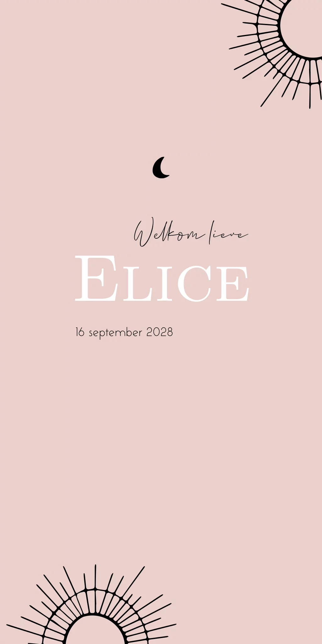 Een trendy geboortekaartje in zacht roze kleur met zwarte lijntekening van zonnetjes. Babykaartje Elice kun je eenvoudig aanpassen van kleur en/of opmaak.