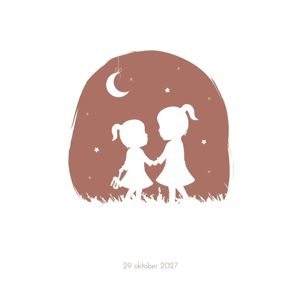 Geboortekaartje Meisje Zusjes Silhouet Sterren