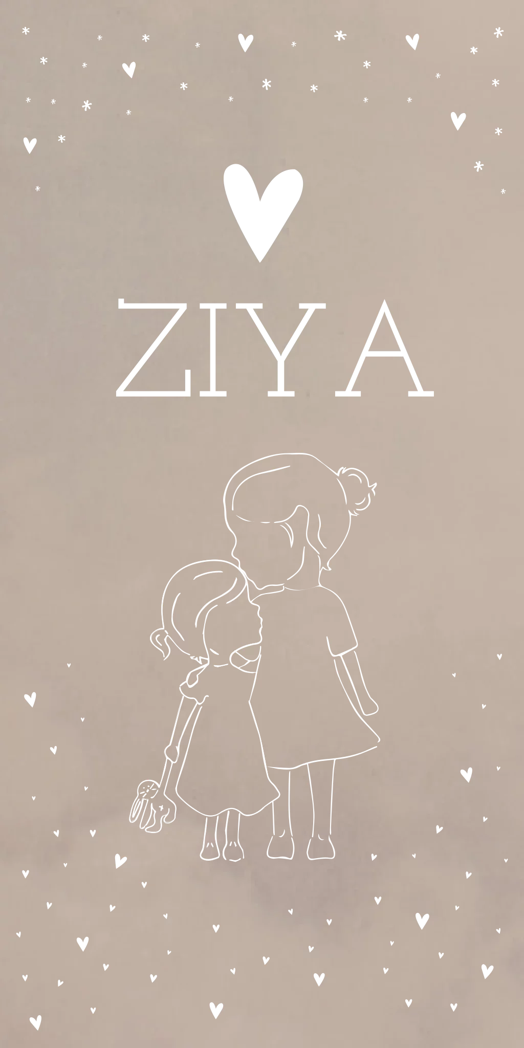 Romantisch oudroze geboortekaartje Ziya met een lijntekening van een zus die haar kleine zusje een kusje omarmt. Omdat ze zoveel van haar kleine zusje houdt vliegen de vonken in hartjes vorm er vanaf!