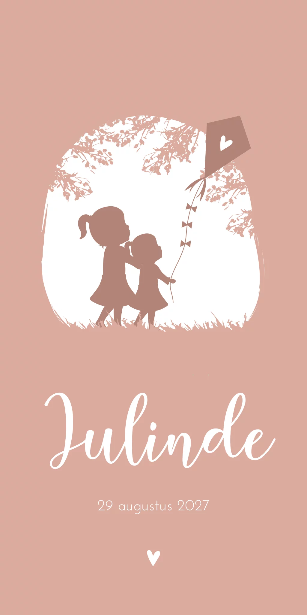 Geboortekaartje Roze Vlieger Silhouetten Zusjes