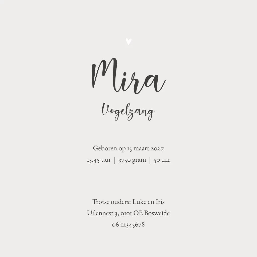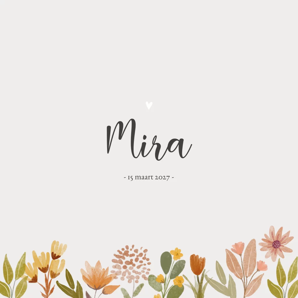 Een vrolijk geboortekaartje met een waterverf bloemenweide. Kaartje Mira is kleurrijk maar ook tijdloos.