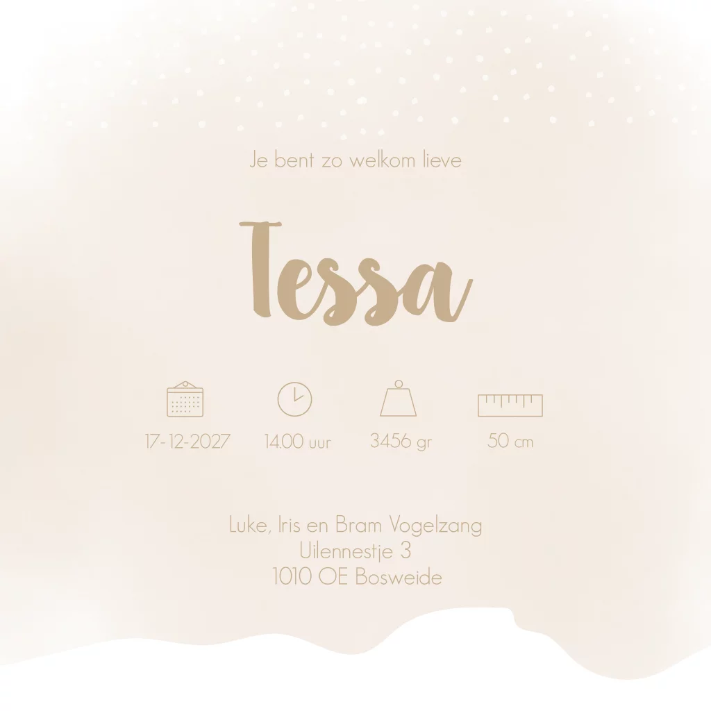 Een schattig winters geboortekaartje met een ijsberen familie. Je past geboortekaartje Tessa eenvoudig naar eigen wens aan in de editor.