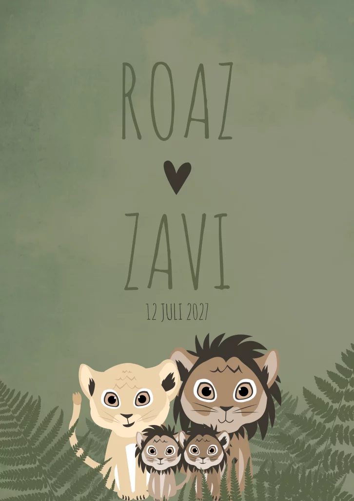 Geboortekaart Tweeling Jungle Leeuwtjes Stoer