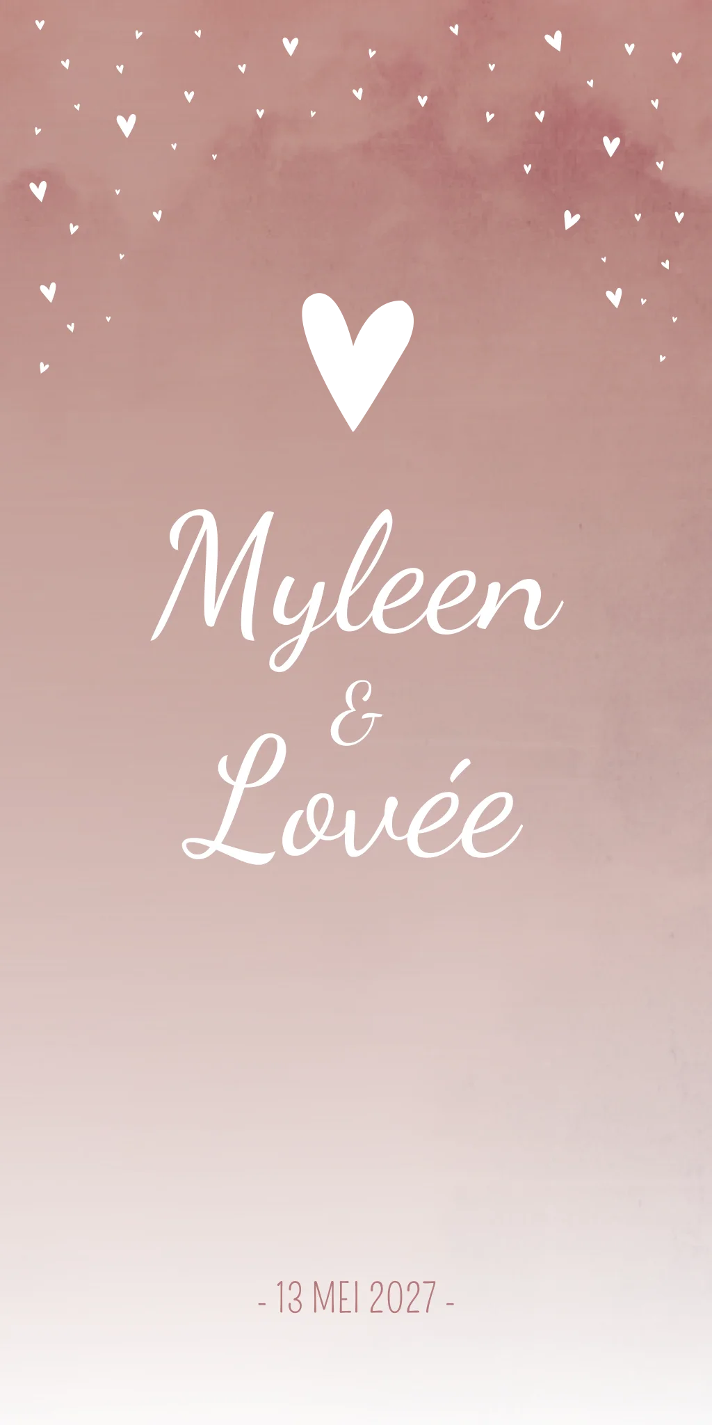 Een warm roze geboortekaartje met een gewolkte achtergrond. Kaartje Myleen en Lovée is een lief geboortekaartje wat er met de koperfolie echt uitspringt!