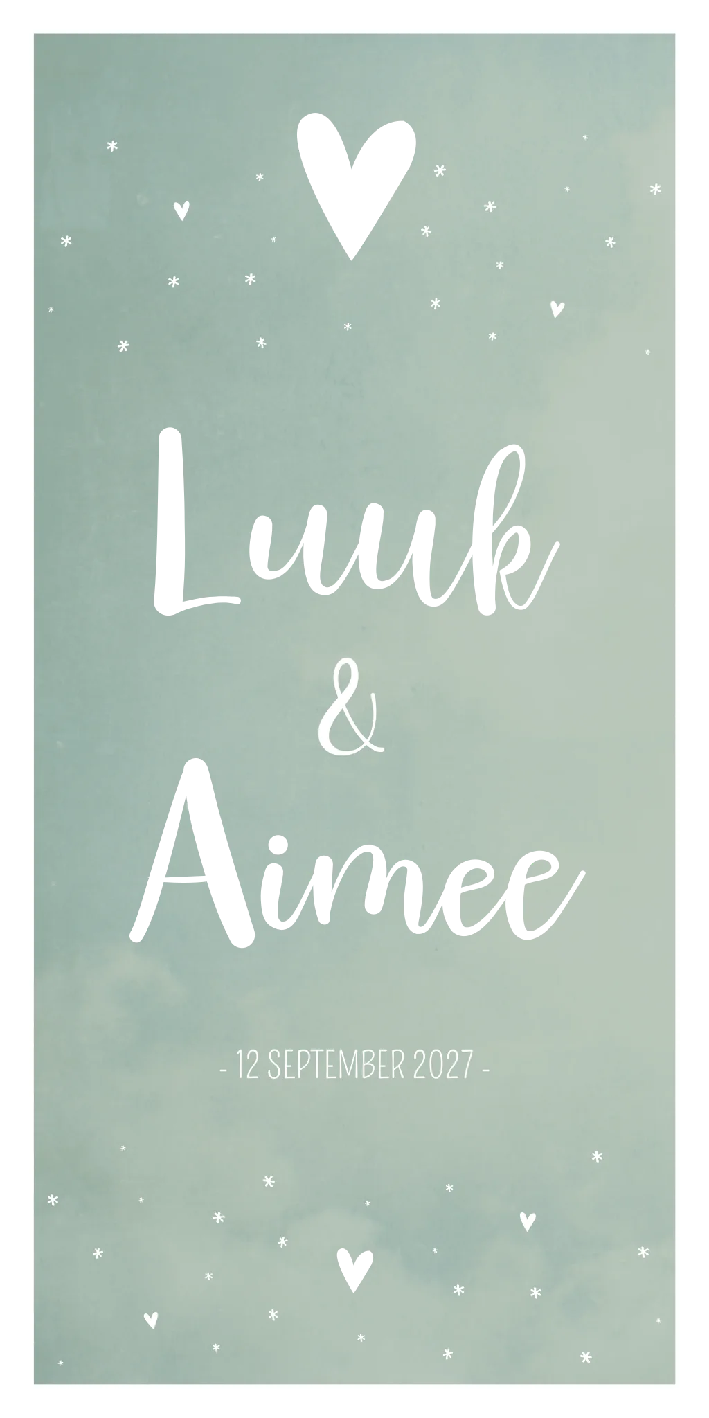 Een unisex stoer en lief geboortekaartje. Kaartje Luuk en Aimee heeft een groene achtergrond wat zowel voor een jongetje als meisje kan. Door de koperfolie springen de namen eruit!