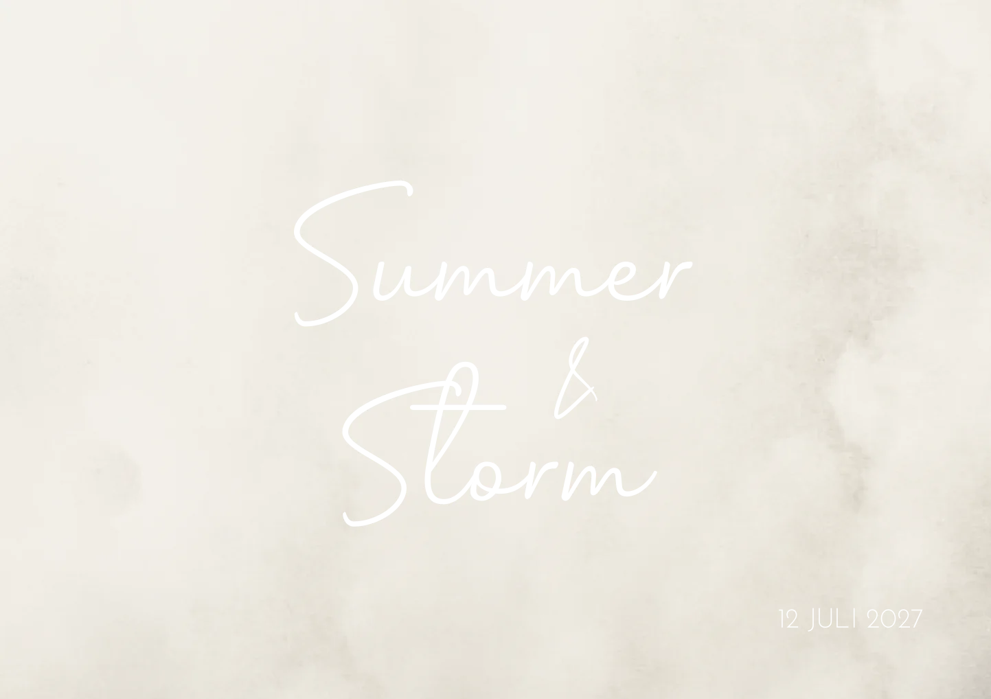 Een beige gewolkt geboortekaartje waarbij de namen in koperfolie staan. Kaartje Summer en Storm is een simplistisch kaartje waarbij de namen centraal staan. Aan de achterzijde van de kaart is ruimte voor de geboortegegevens en nog een mooi gedichtje.