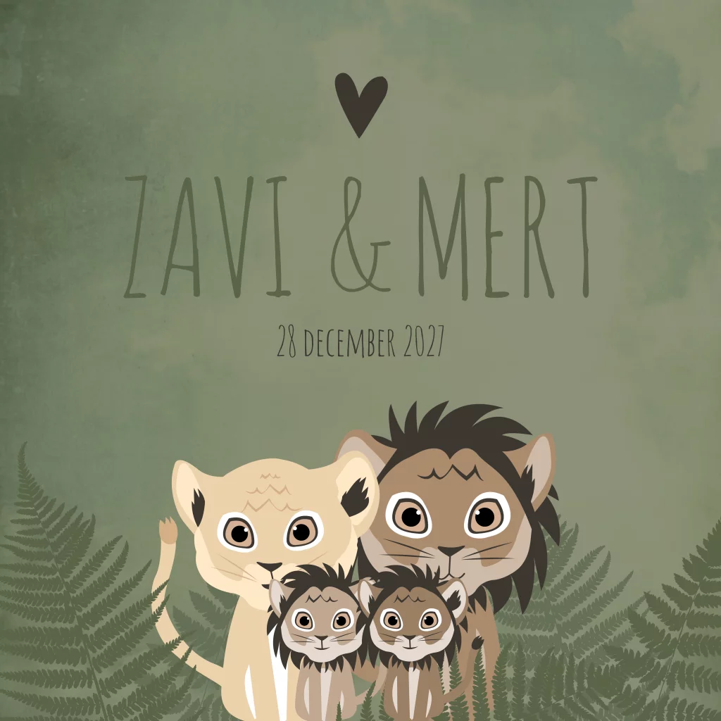 Geboortekaartje Tweeling Jungle Leeuwen Stoer