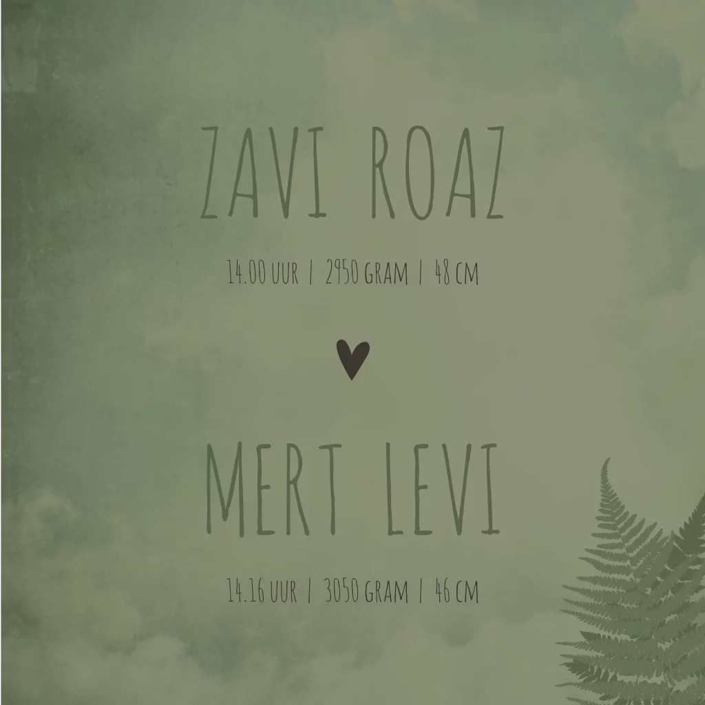 Kaartje Zavi en Mert is een groen kaartje met gewolkte achtergrond. Wil je graag een andere kleur? Neem dan snel een kijkje in onze editor voor alle opties!