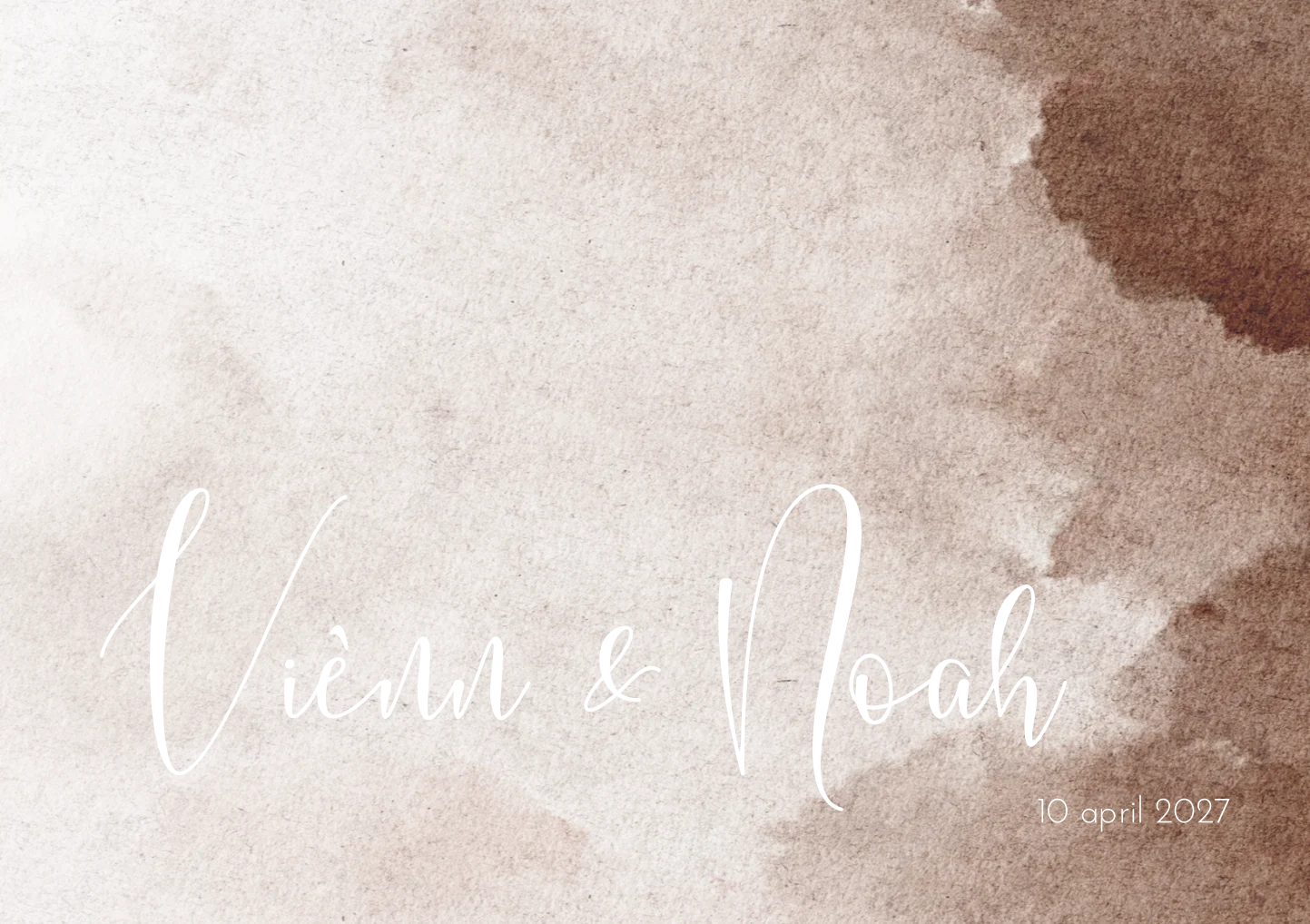 Een romantisch geboortekaartje met een bruin/beige waterverf achtergrond. Kaartje Viènn en Noah is een klassiek geboortekaartje en wordt prachtig als je deze laat bedrukken met goudfolie.